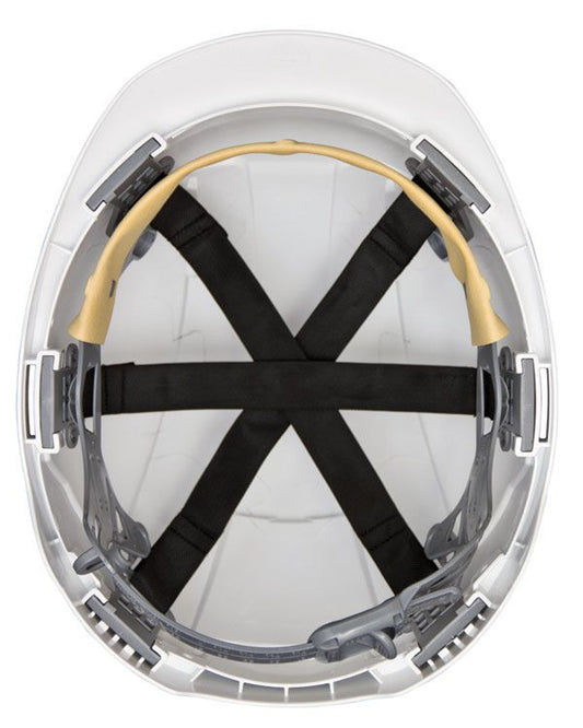 Apsauginis Šalmas AJUSCO CHINSTRAP, su 6-ių taškų dirželiu, baltos spalvos