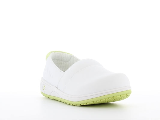 Profesinės darbo klumpės SAFETY JOGGER SOPHIE O1 ESD SRC, baltos su žaliais akcentais