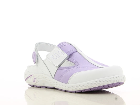 Itin patogios moteriškos darbinės klumpės ALIZA OB ESD A SRC E, baltos su violetine spalva