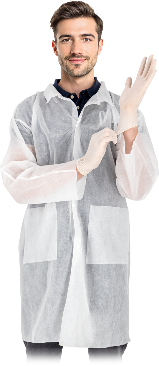 Vienkartinis apsiaustas iš 100% polipropileno LAB CLASSIC, ilgomis rankovėmis (10 vnt.)