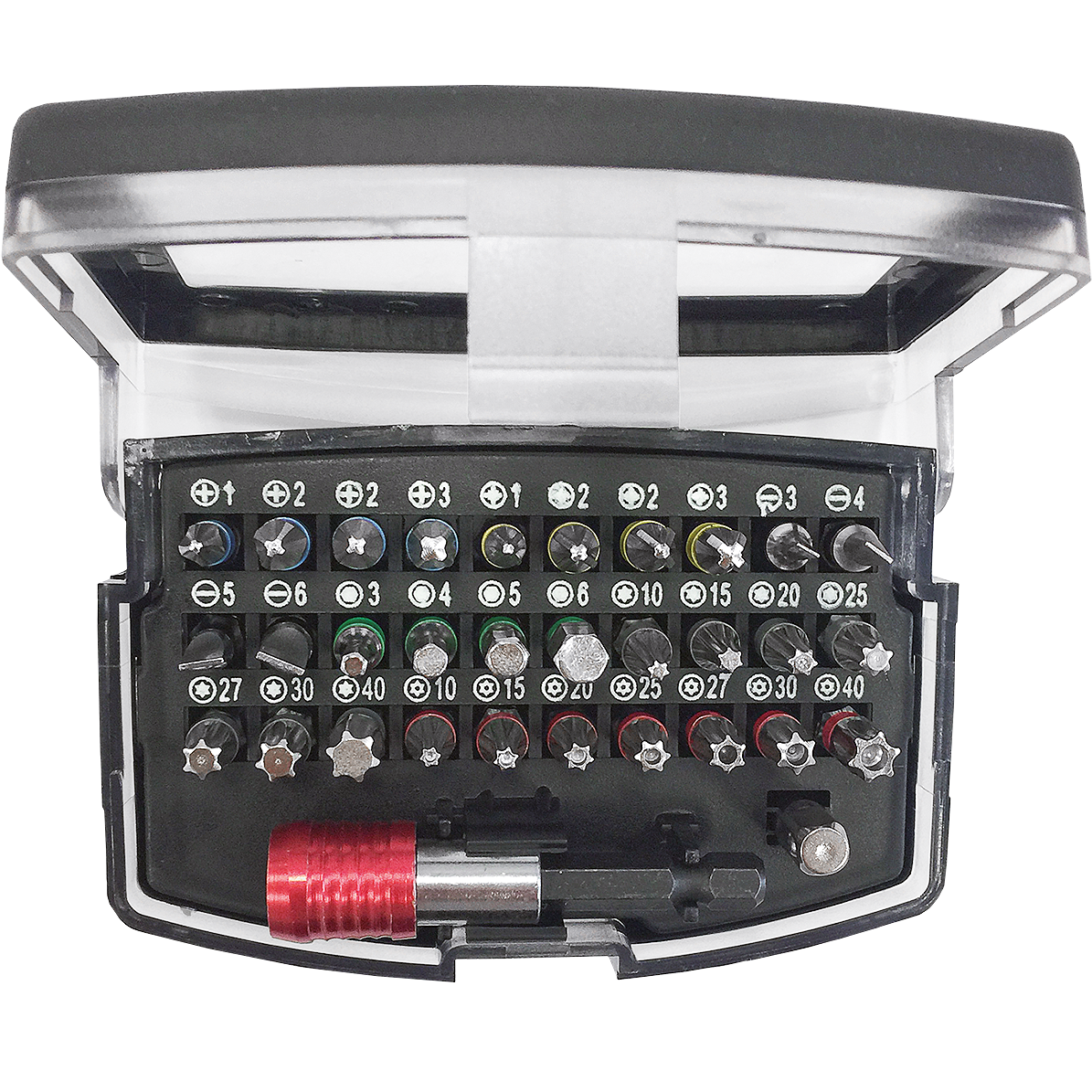 - T (Torx) bits: T10, T15, T20, T25, T27, T30, T40 (x2) – suitable for star screw heads.