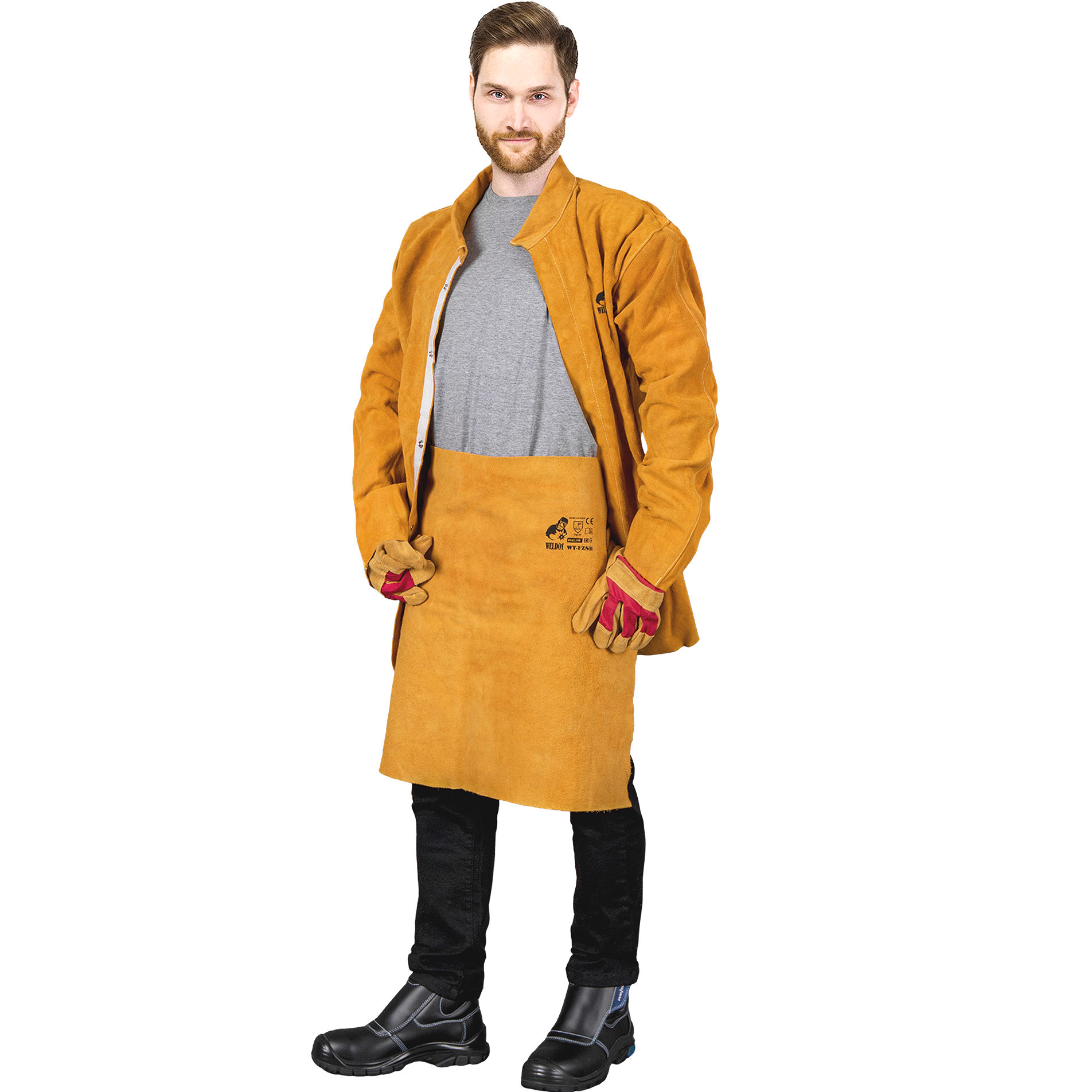 Sturdy work apron made of cotton. Adjustable universal size.