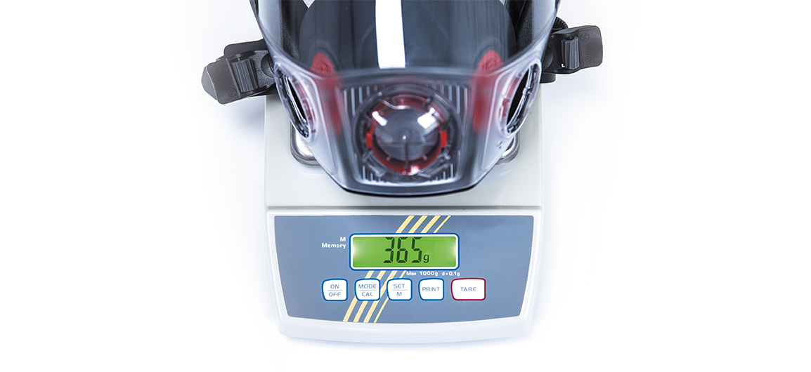 Svoriai ir medžiagos – termoplastinis elastomeras + polikarbonatas; sveria ~ 365 g