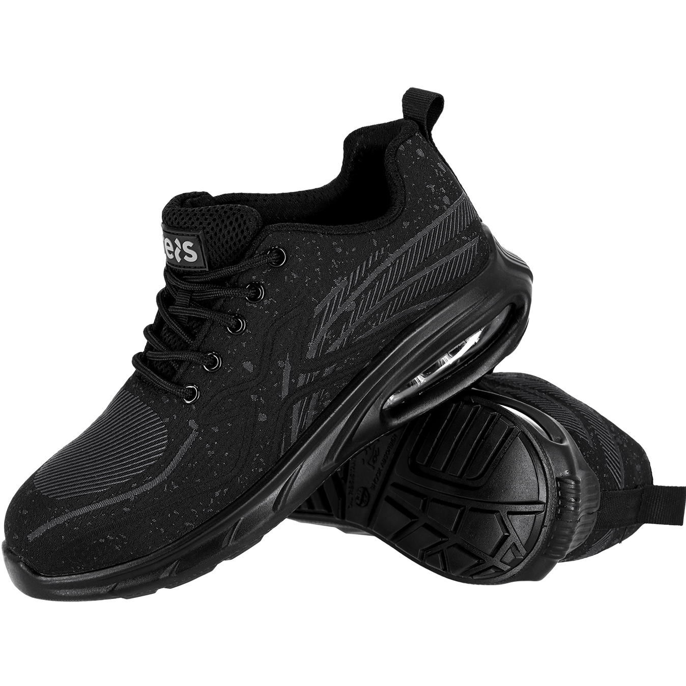 Safety shoes with a steel toe cap that is resistant to impacts of 200 J and 15 kN compression and a Kevlar sole reinforcement that protects against punctures. The upper of the shoe is made of breathable textile material. Non-slip sole made of EVA foam and rubber. Shock absorption in the heel area. Breathable 3D mesh lining. Sporty design. Category S1. Meets the requirements of the EN 20345 standard.