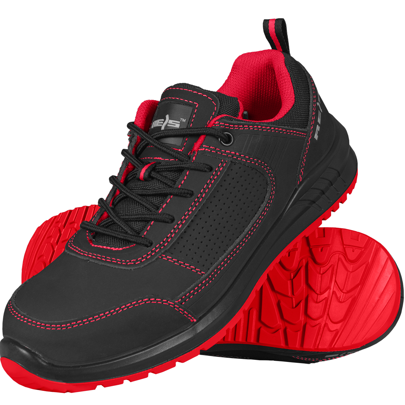 Comfortable and light work boots made of pressed leather. The shoes have a double polyurethane sole. Built-in toe protection against falling objects. Perfect for men and women to wear.
