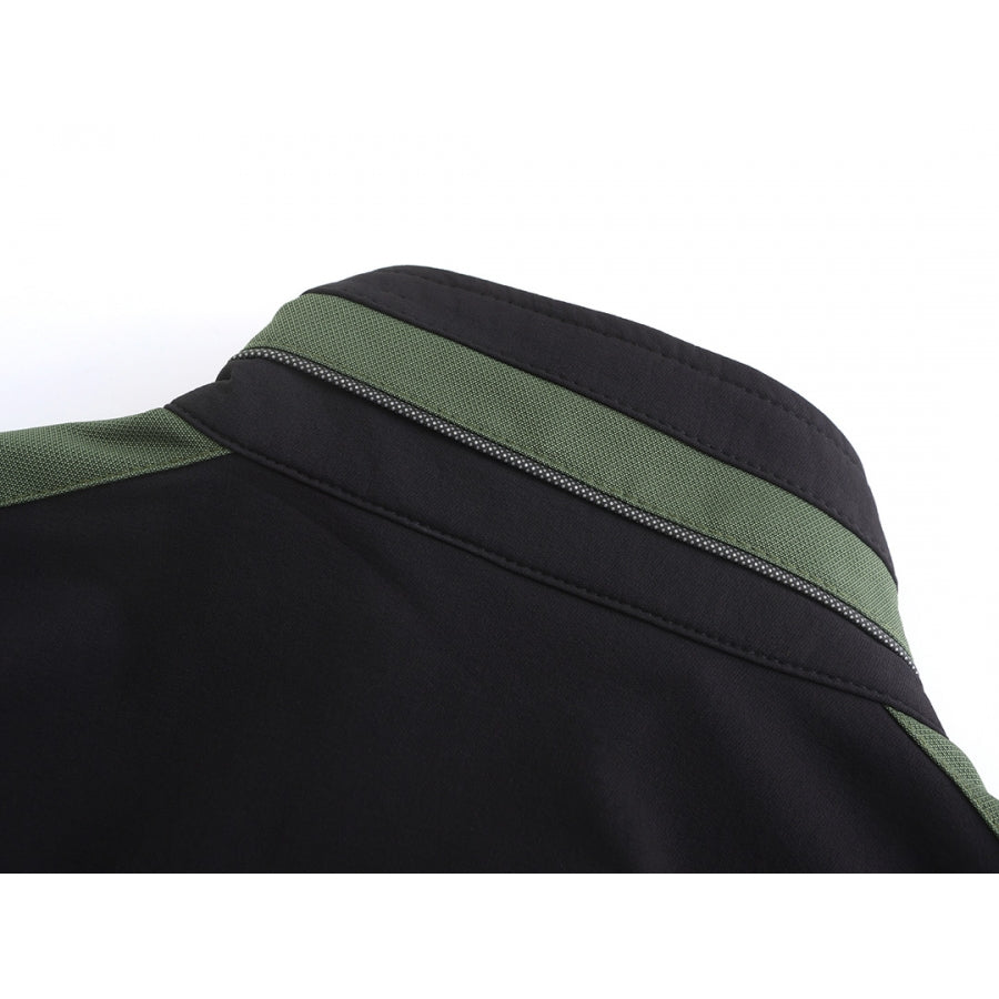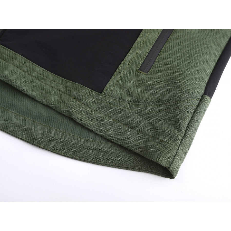 Functional pockets: chest pocket with zipper, side pockets with zippers.
