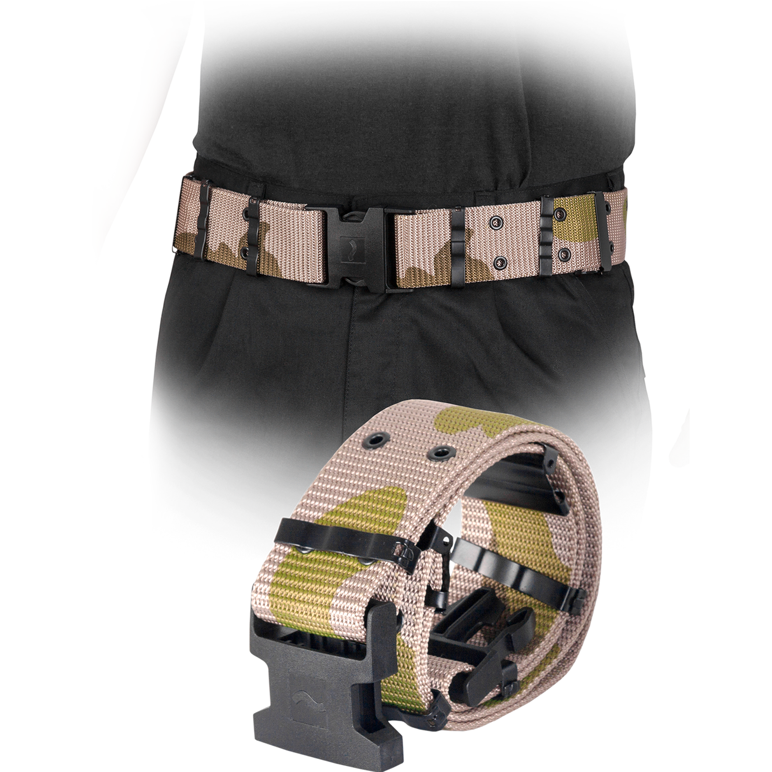 Sturdy fabric belt in camouflage colors. Perfect for wearing with casual clothing.
