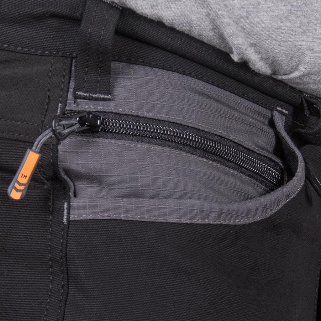 - leg pockets including cell phone pocket