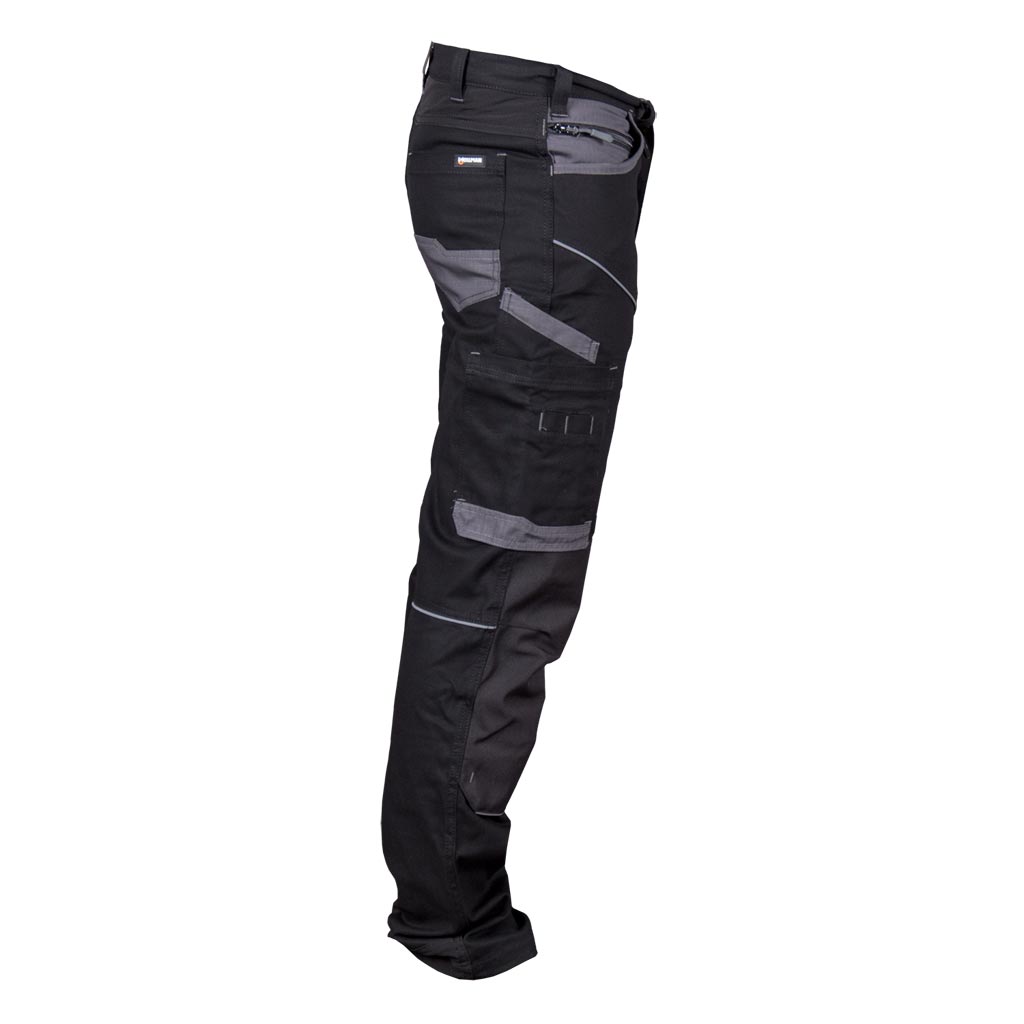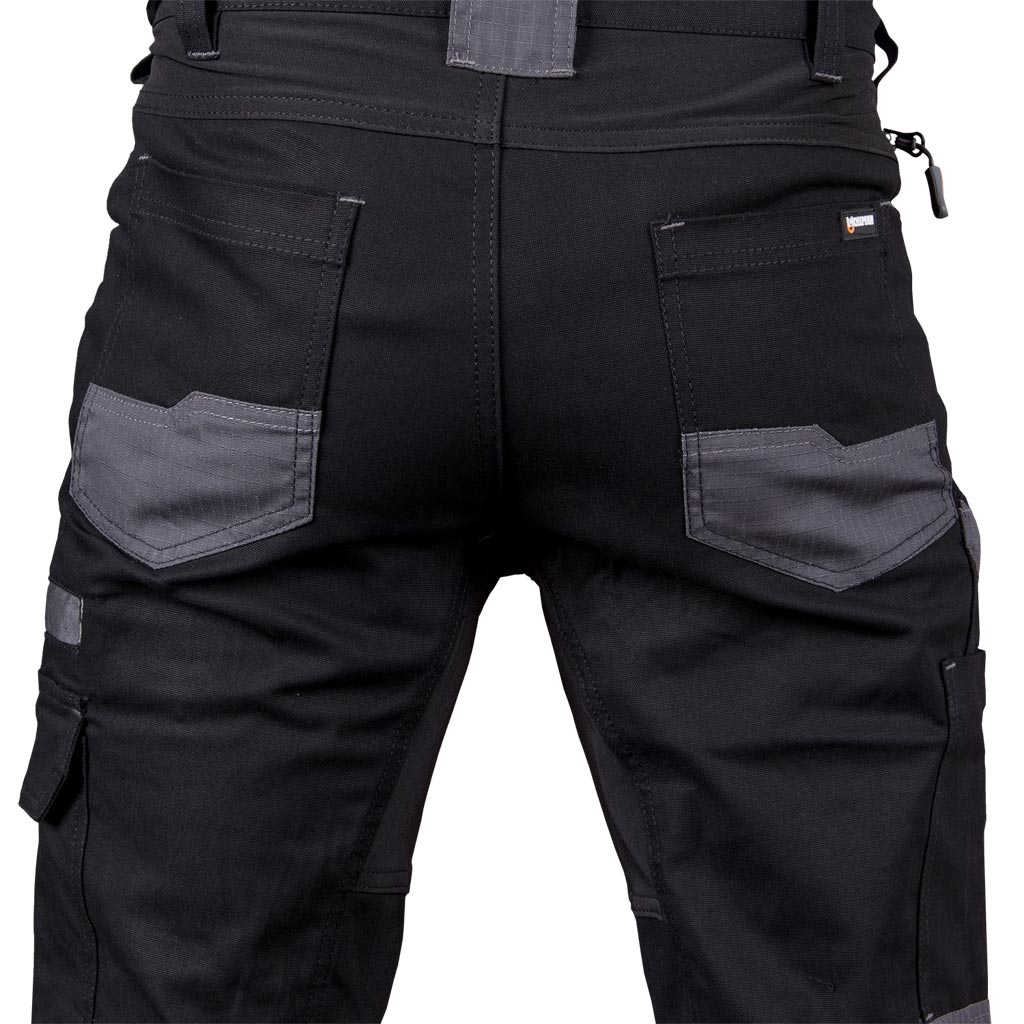 High quality cotton men's work pants, elastic, made of liquid, oil and dirt resistant fabric. The pockets are designed in such a way that it is convenient to work in various positions. There are 4-way stretch fabric inserts in the upper part of the pants, in the crotch and on the lower back of the pants, so the pants do not restrict movement.