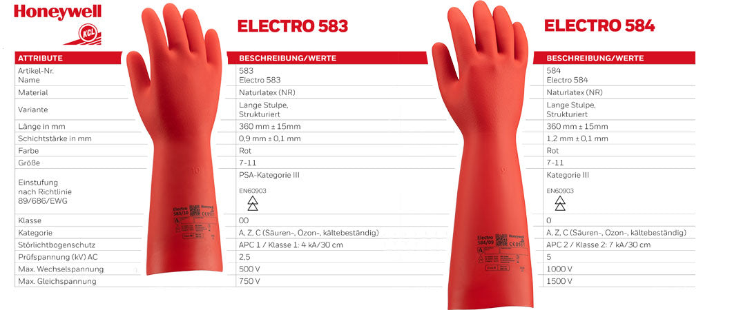 Elektrą izoliuojančios pirštinės HONEYWELL KCL Electro 584, Maks. darbinė įtampa: 1000 V AC / 1500 V DC