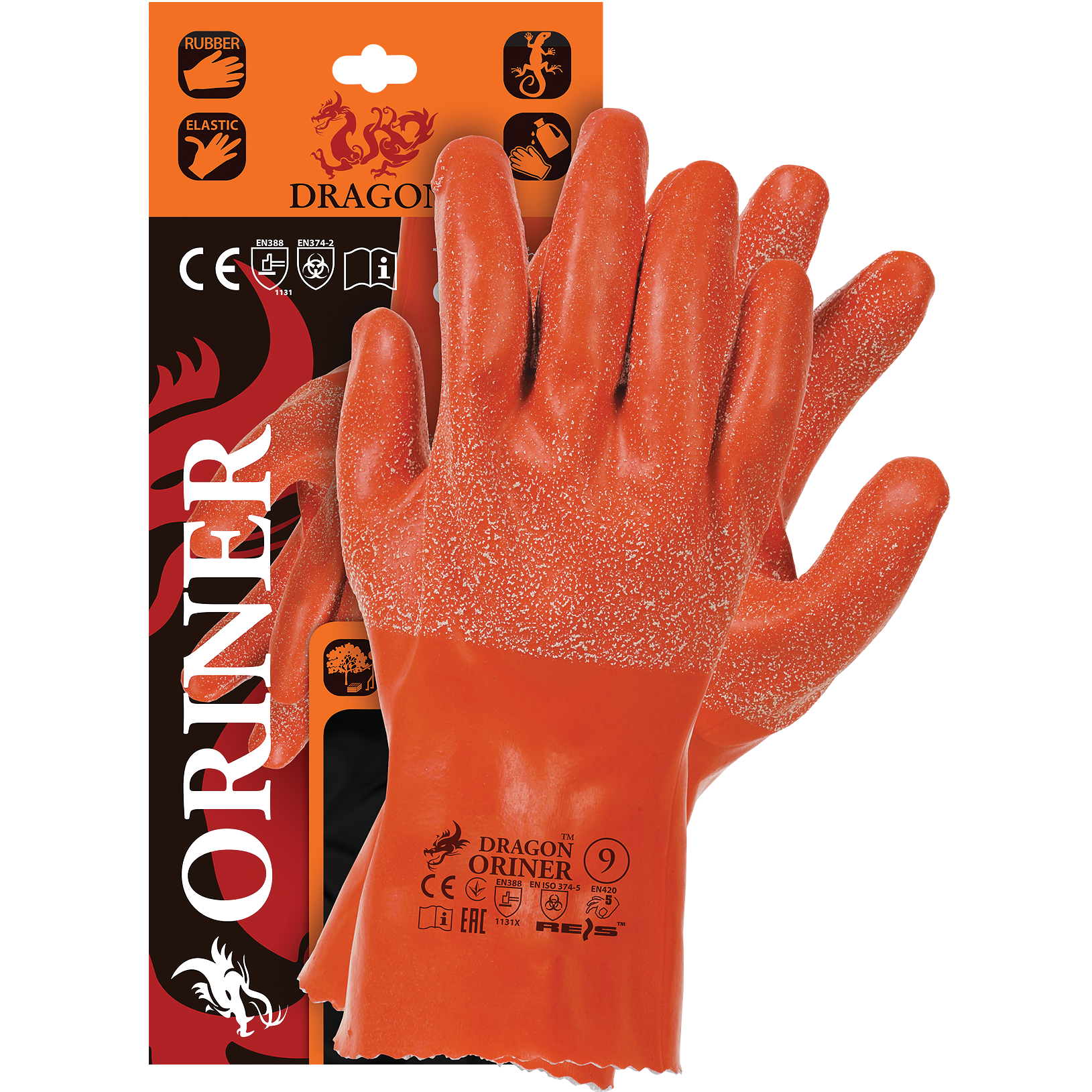 Rubber protective gloves for working at low temperatures. Designed for work in the areas of fish processing, food production and preparation, room cleaning, maintenance. Elongated model, elastic, ensures good grip on slippery surfaces.