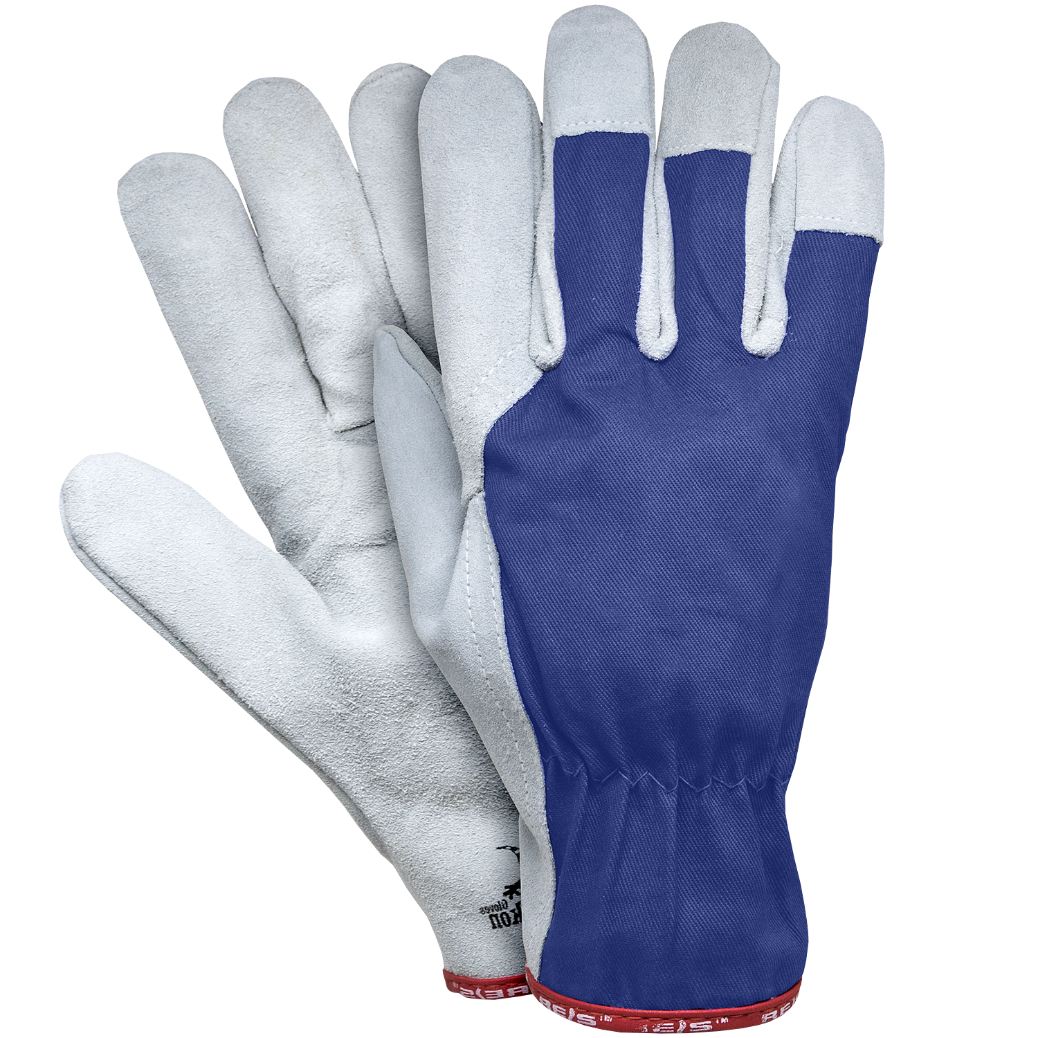 Protective gloves for work, made of high quality cowhide combined with breathable material in the upper part. The entire plane of the palm is covered with natural leather, so it perfectly protects against mechanical impact.