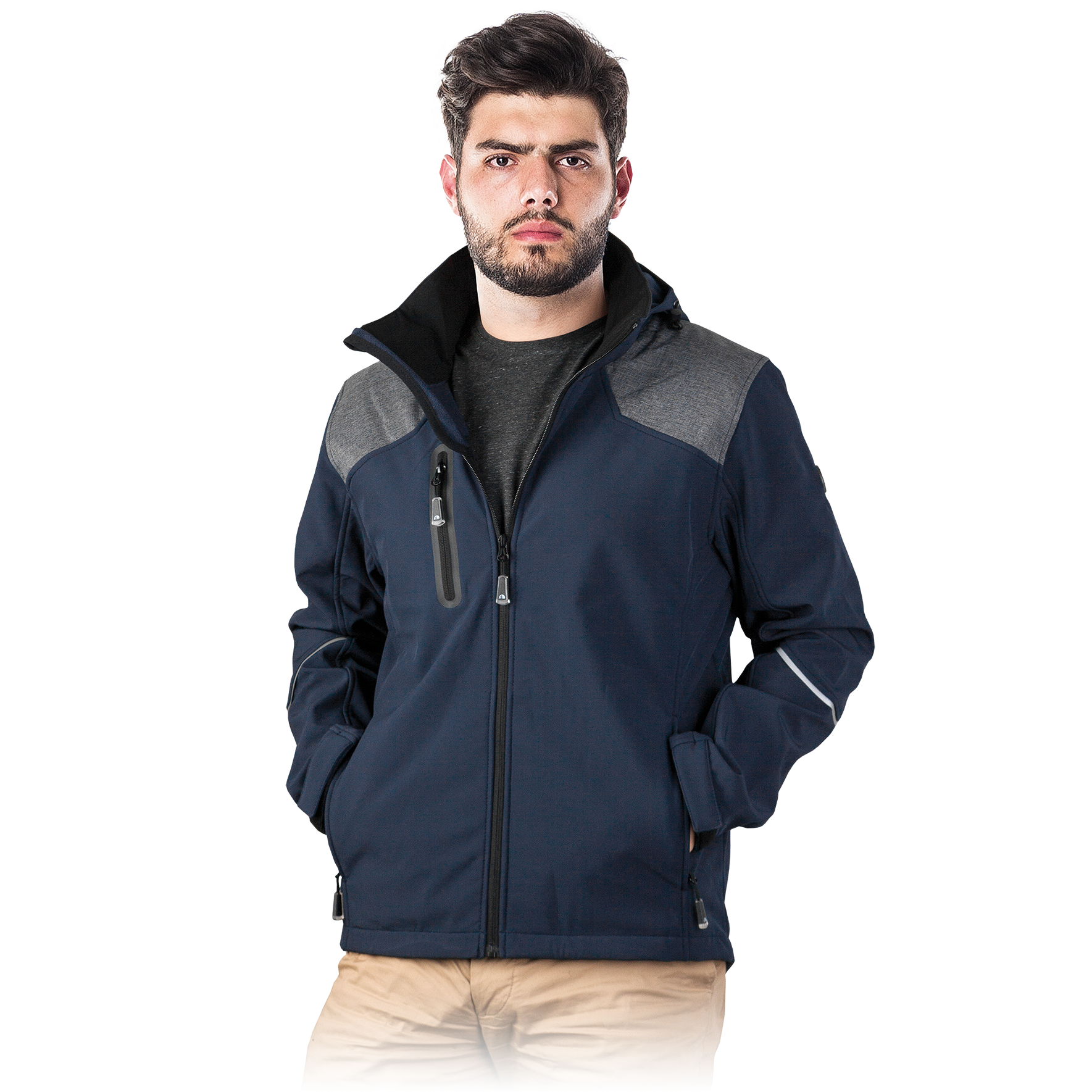 Comfortable and strong men's jacket (Soft Shell). Perfect for both casual and work wear. Heated, has comfortable pockets and reflective elements.