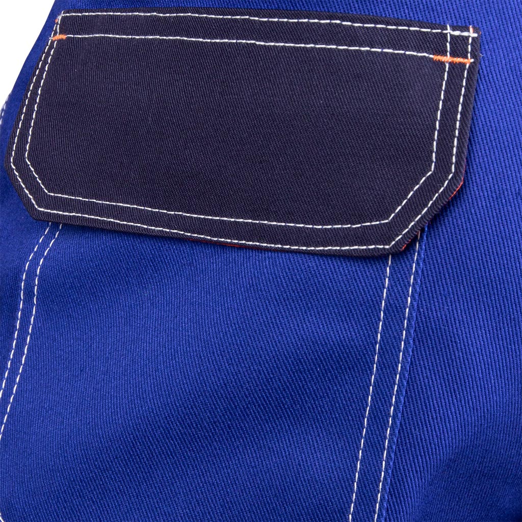 - two back pockets with Velcro closures and two side pockets with additional flaps to prevent sparks from getting inside