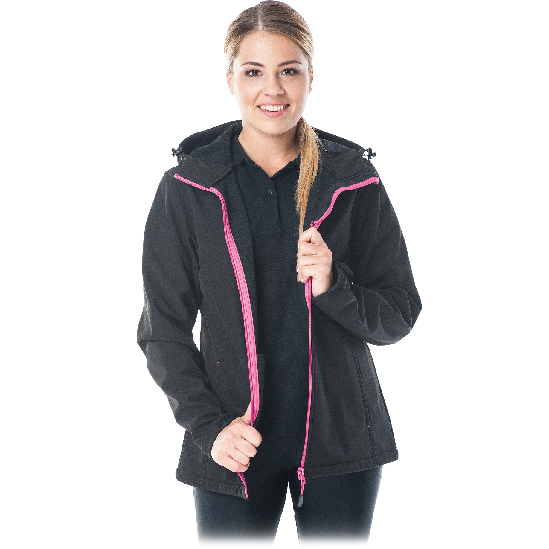 Women's universal jacket, designed to be worn in the spring and autumn season (SOFTSHELL technology). Made of resistant and breathable fabric. "Breathable" fabric (1000MM).There is a comfortable hood. Many convenient pockets are planned.