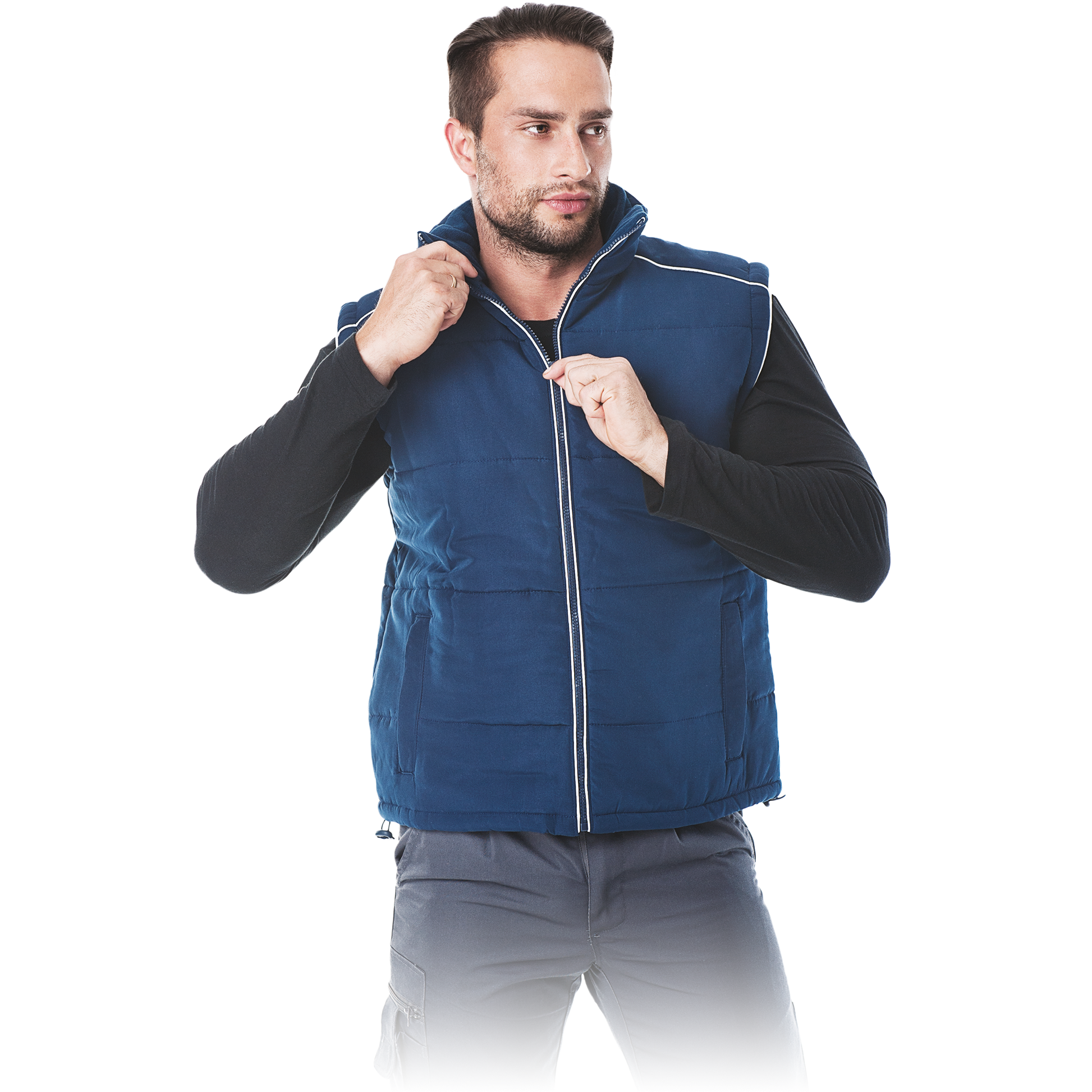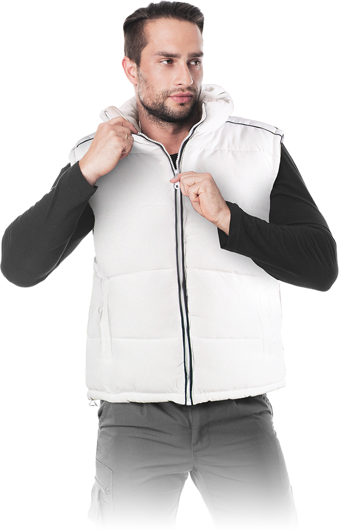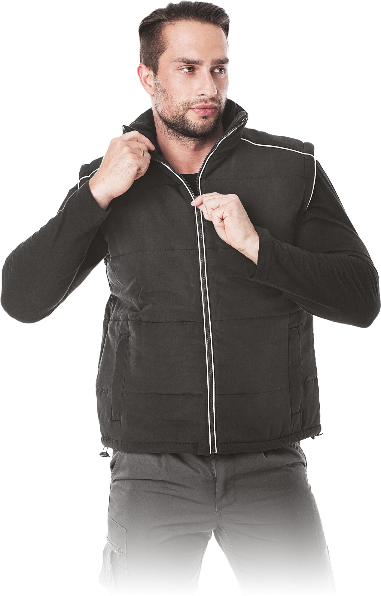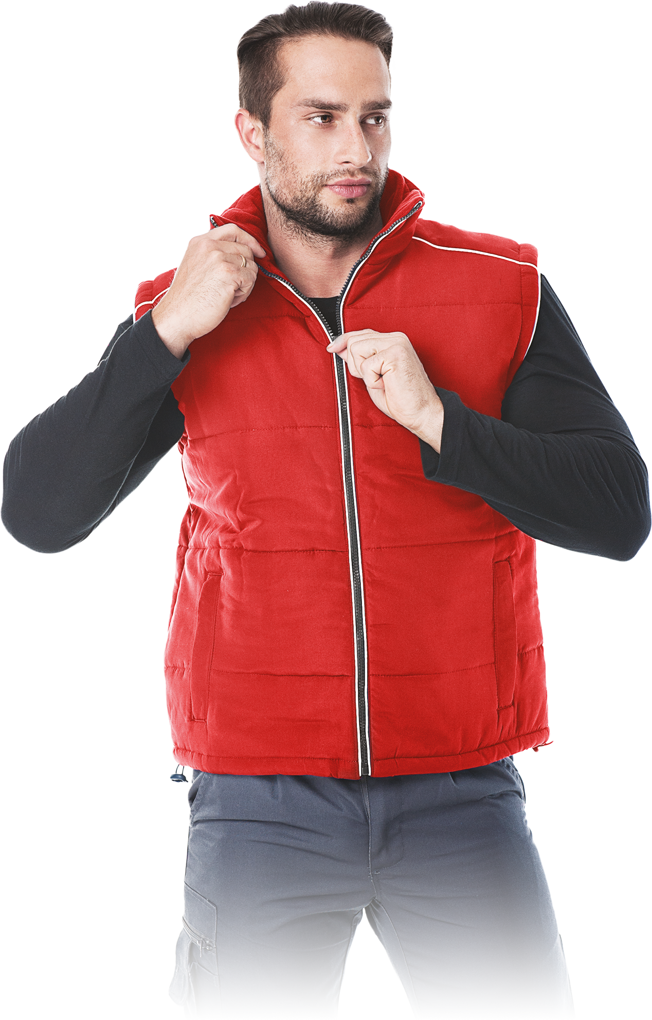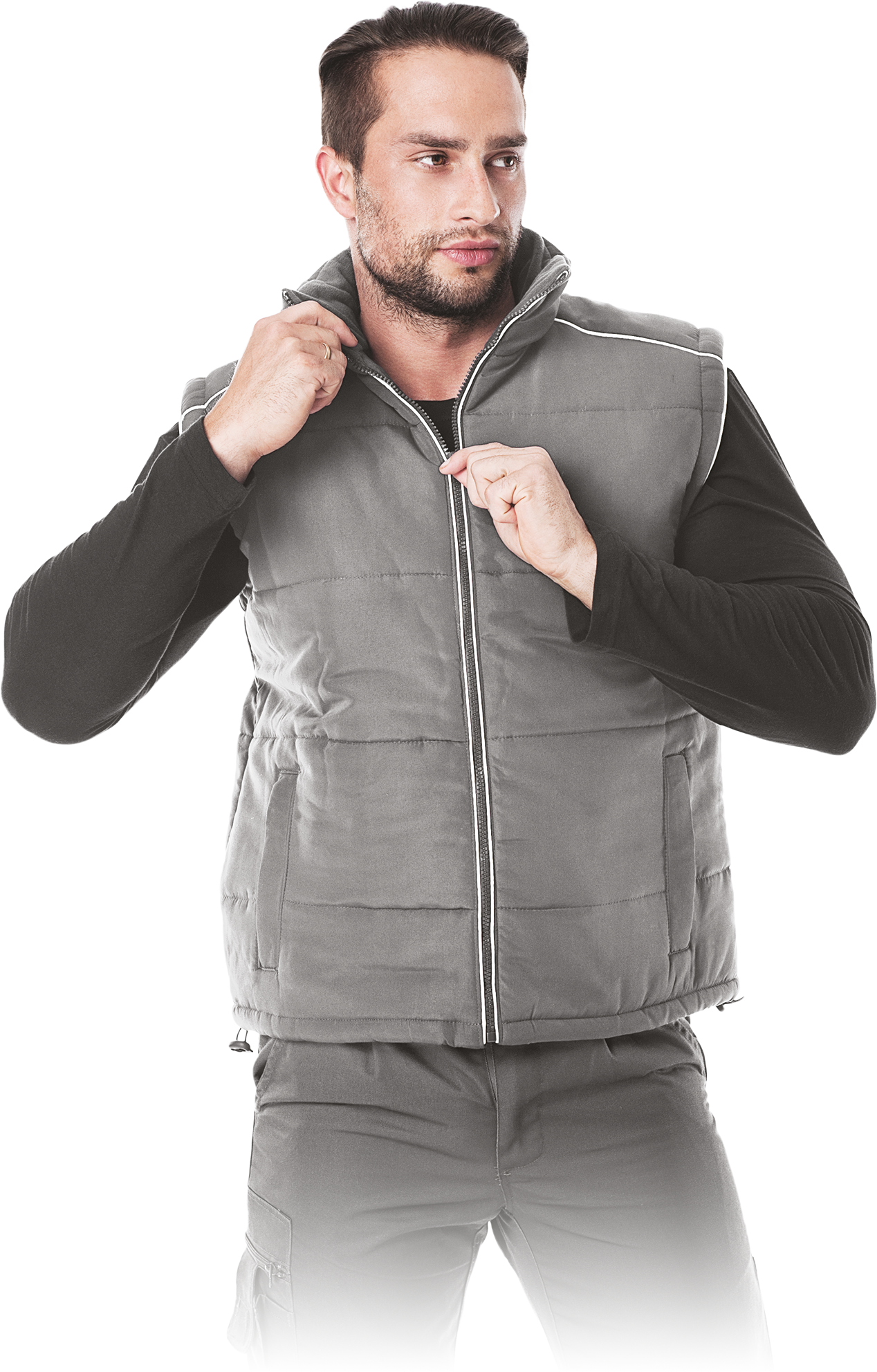 Warm vest for both work and leisure. Quilted with transverse stripes, which keeps the lining in place. Stand-up collar, inner lining made of fleece material, so it is pleasant to the touch.