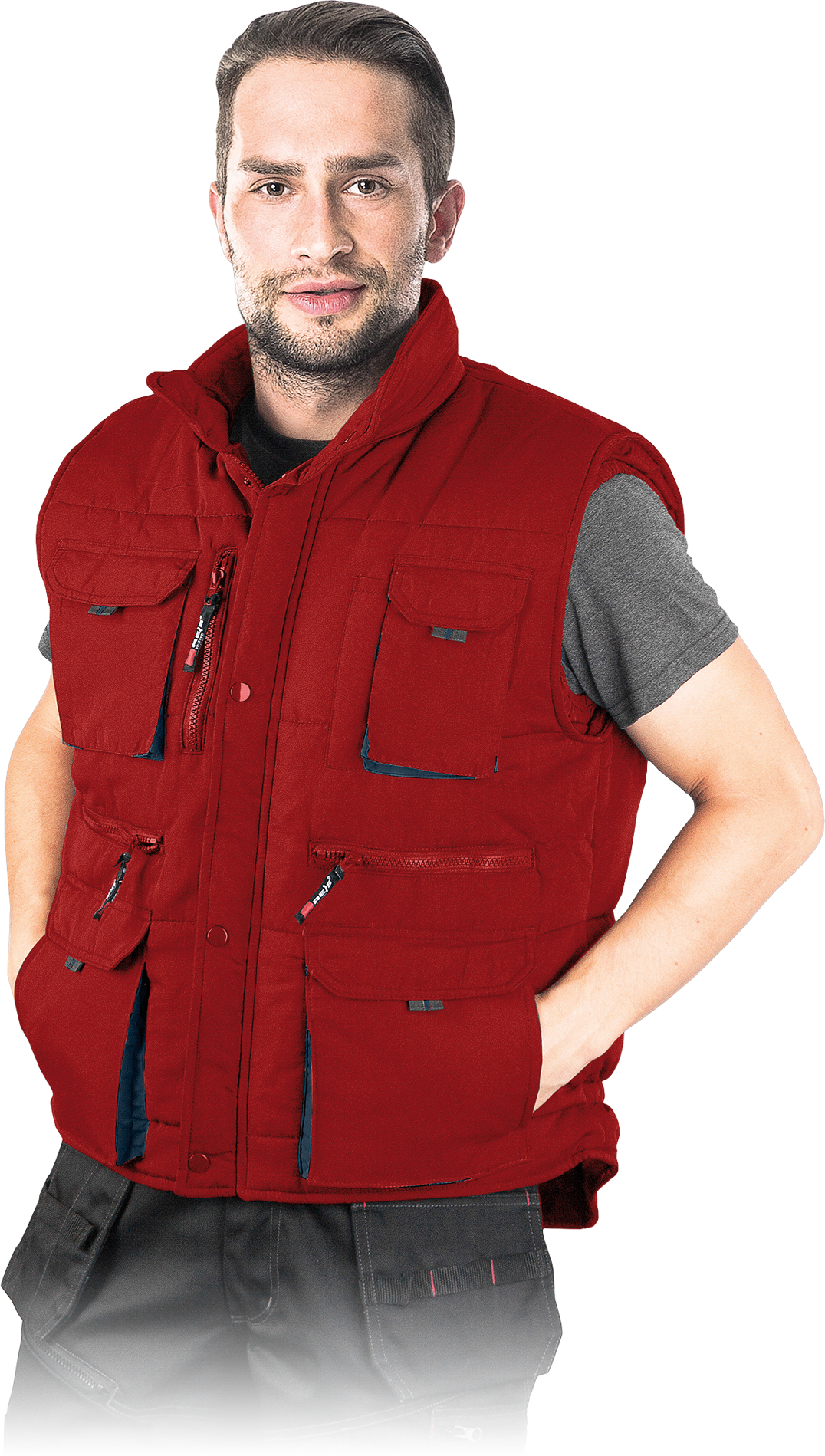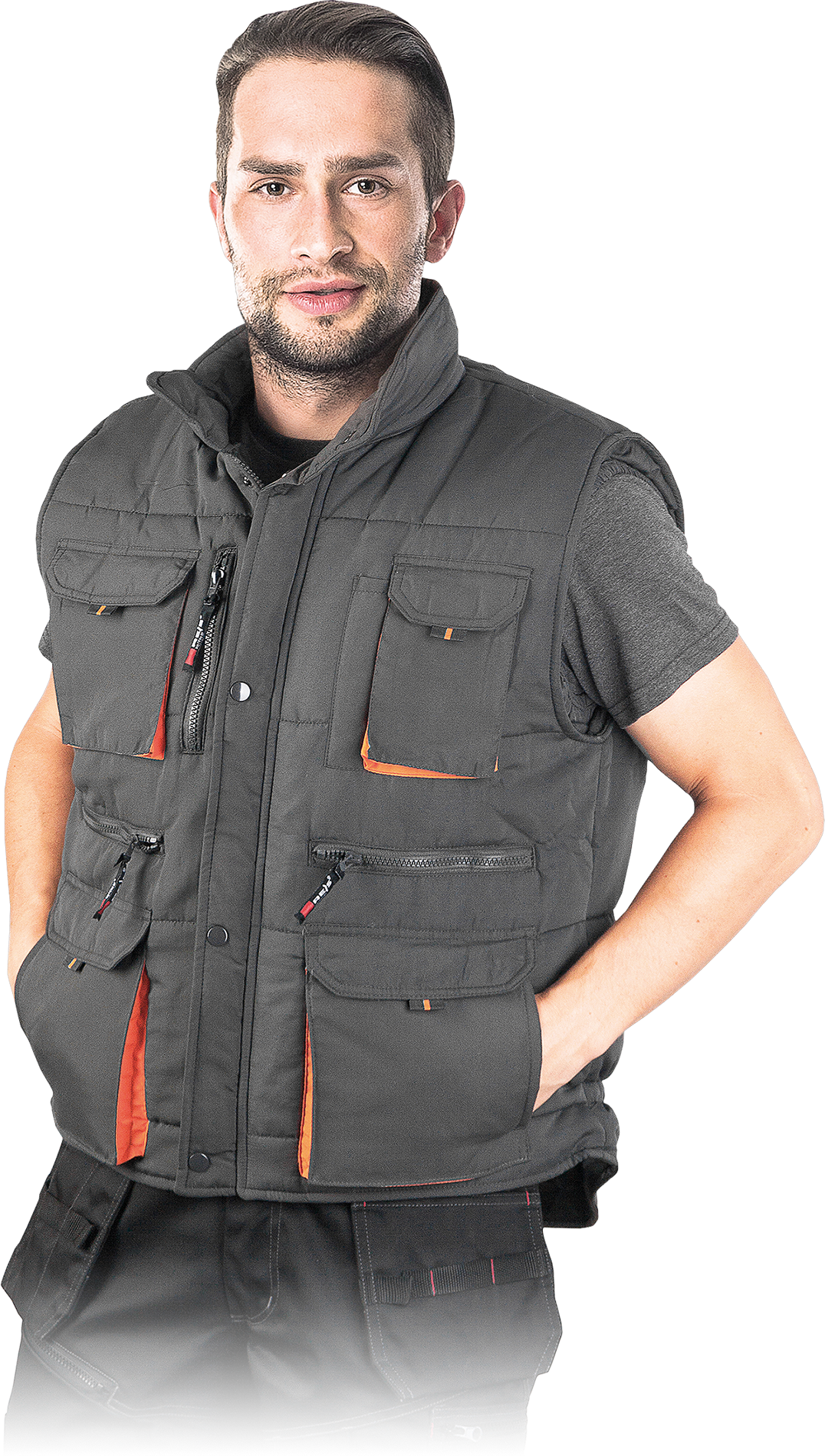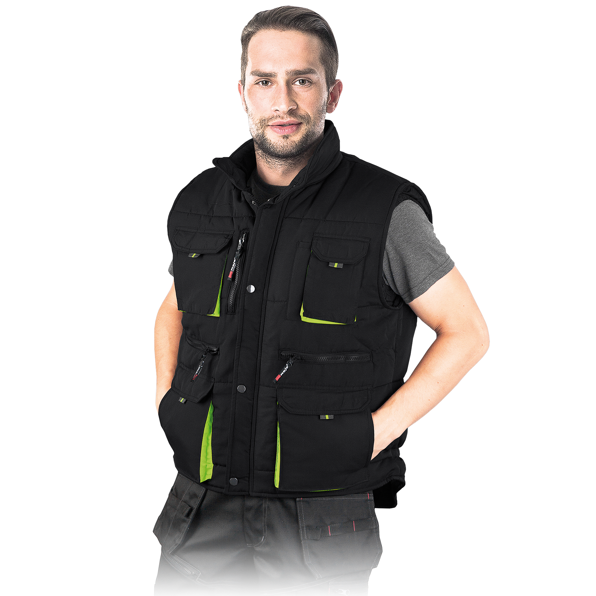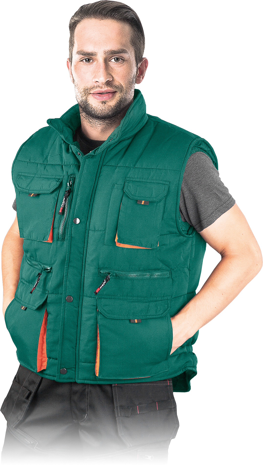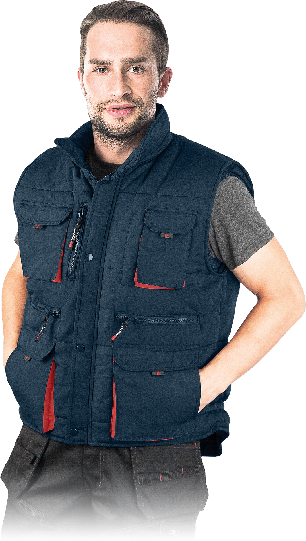 A warm vest for both work and leisure. Quilted with cross strips, which keeps the lining from moving. Lots of extra pockets. Popular model among professionals and individual users.