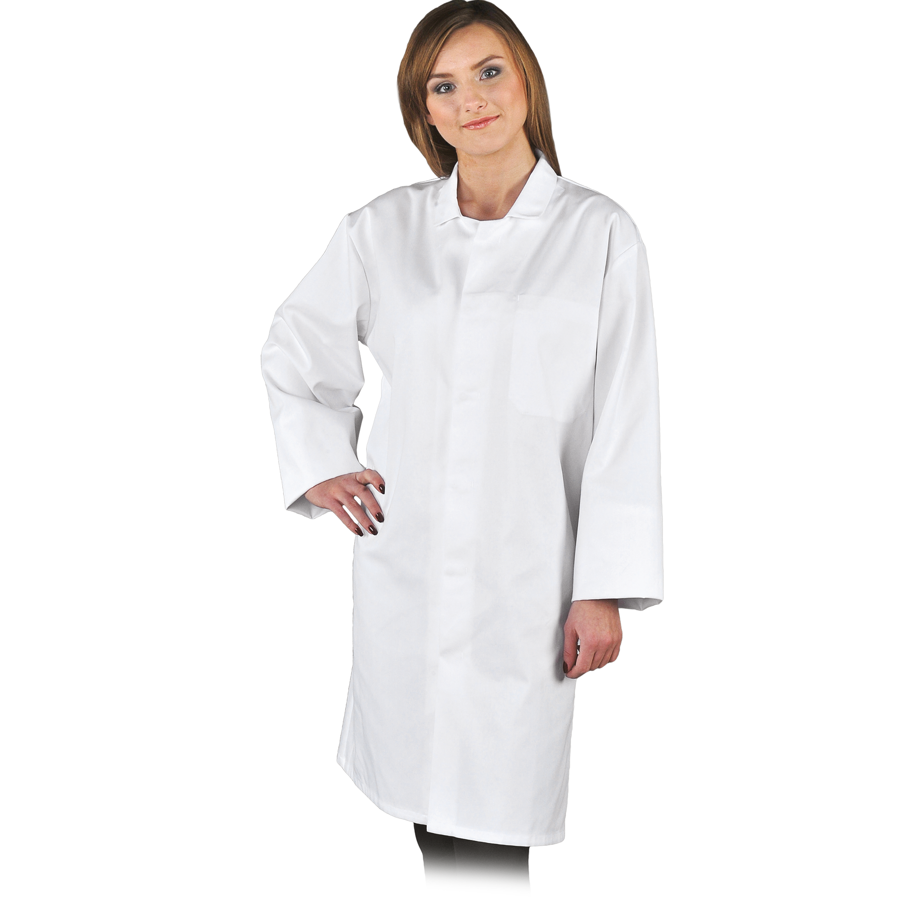 This coat is a comfortable and practical choice for work in the food industry. Its fabric composition of 65% polyester and 35% cotton ensures comfort and durability. The coat is adapted to work in the HACCP system, so it meets high hygiene standards.