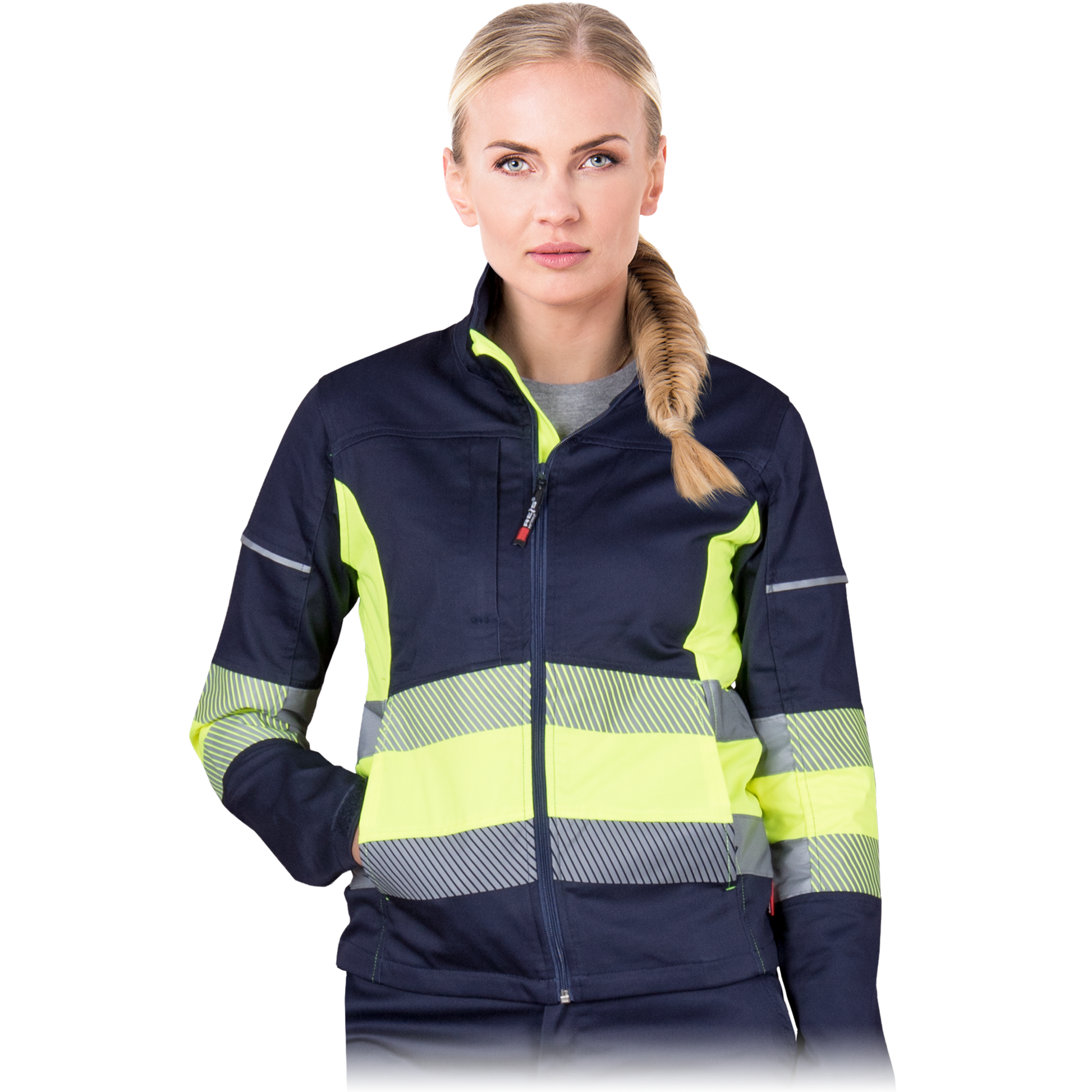 Sturdy and comfortable women's work jacket for comfortable work in various conditions. Made of durable and light fabric. With reflective details.