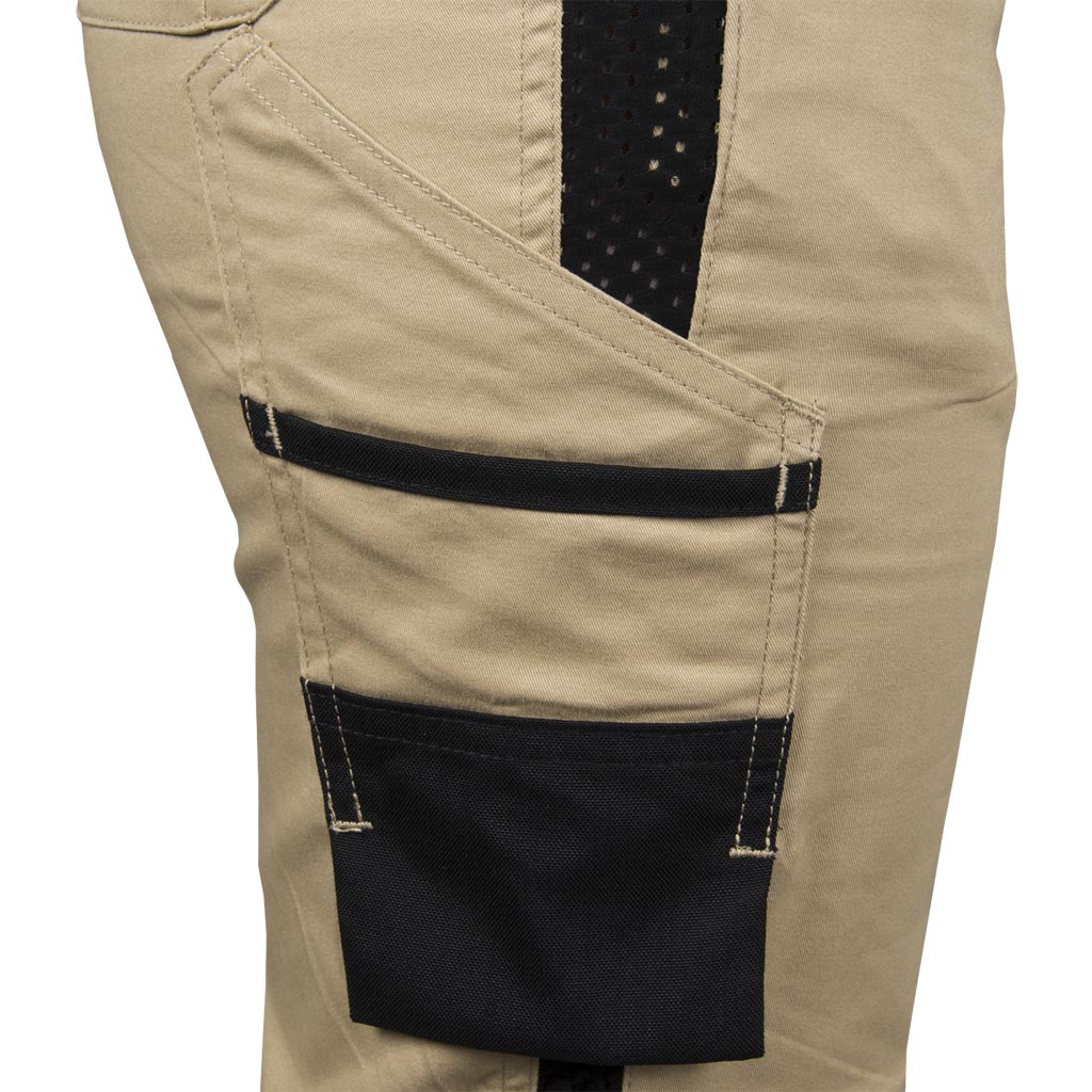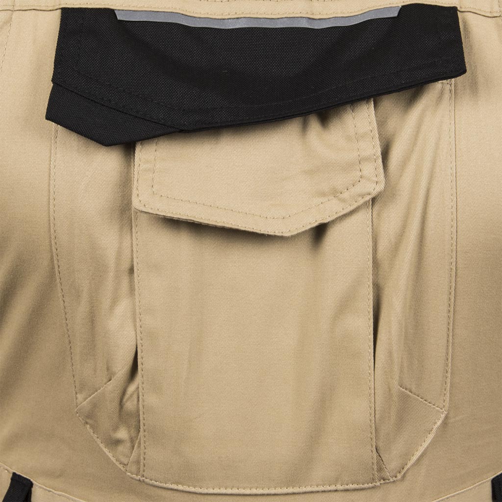- six pockets: two on the back with snaps and two on the sides and on the legs, one for a mobile phone and one with a zipper