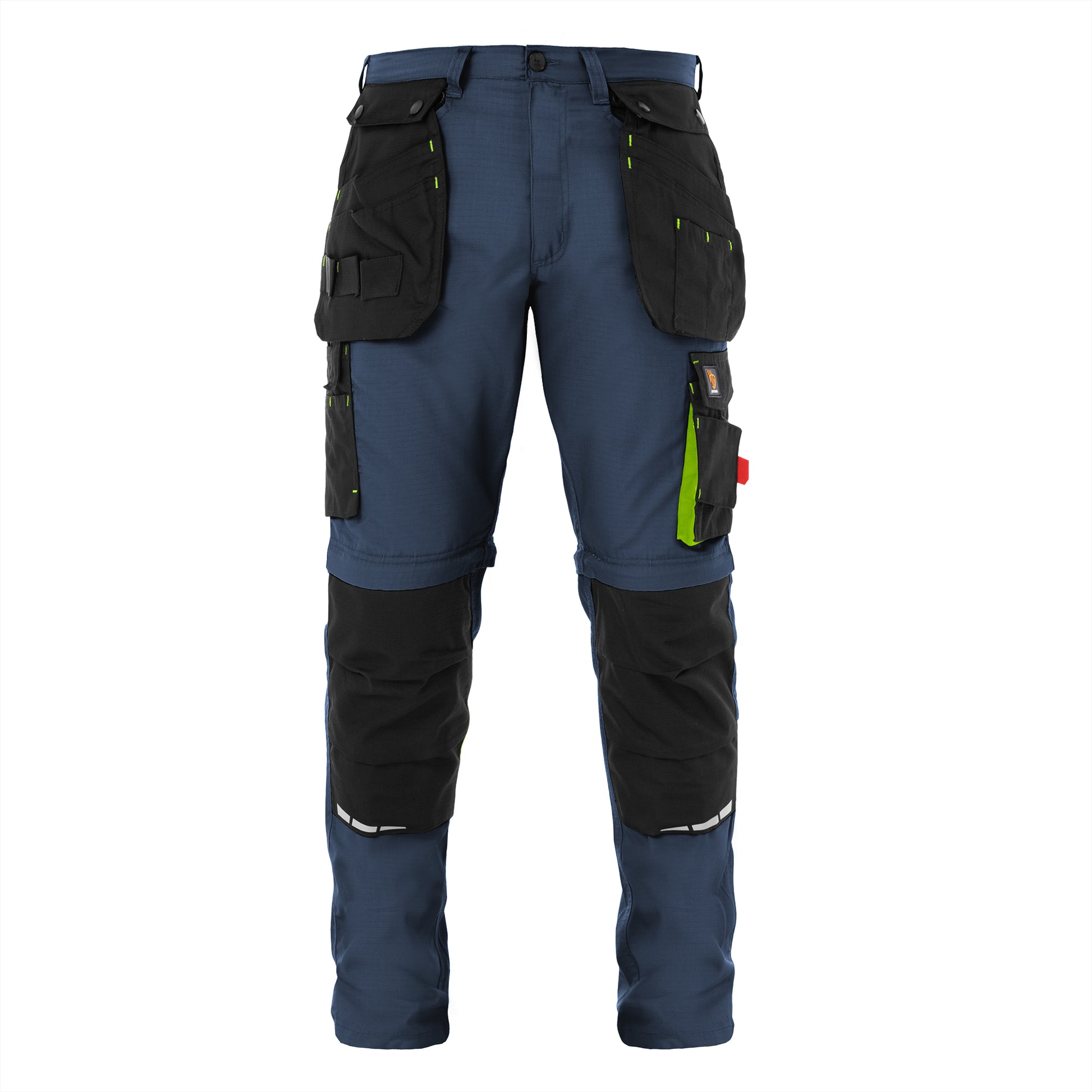 Functionality: Thanks to the zip-off legs, the trousers can be quickly converted into shorts. Equipped with 10 functional pockets, including: two zip-fastened and press-fastened installation pockets, a smartphone pocket, a side tool pocket, a ruler pocket, two back pockets and two classic front pockets. There is an option to use knee pads.
