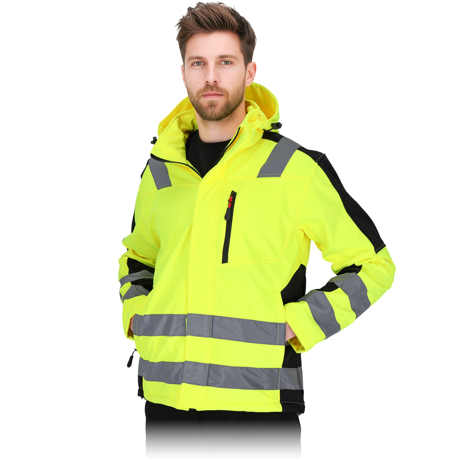 Aukštos kokybės darbo striukė iš trijų sluoksnių softshell audinio, skirta naudoti lauko sąlygomis. Ji apsaugo nuo vėjo ir lietaus, leidžia kūnui kvėpuoti ir užtikrina maksimalų komfortą darbo metu. Fluorescencinės spalvos audinys ir šviesą atspindinčios juostos padidina darbuotojo matomumą ir saugumą.