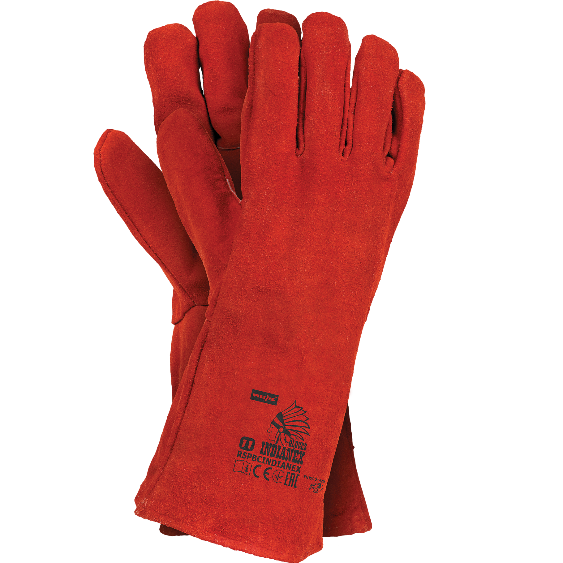 Protective leather gloves. All sewn from cowhide. Length - 35 cm.
