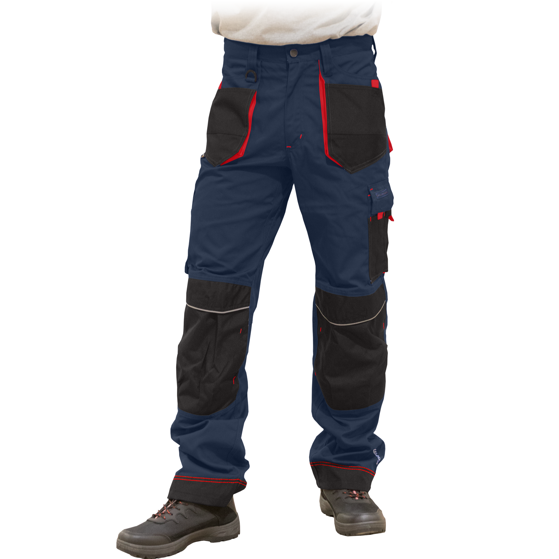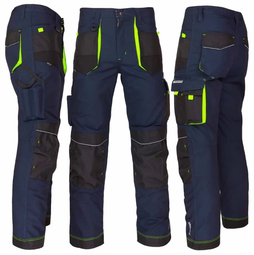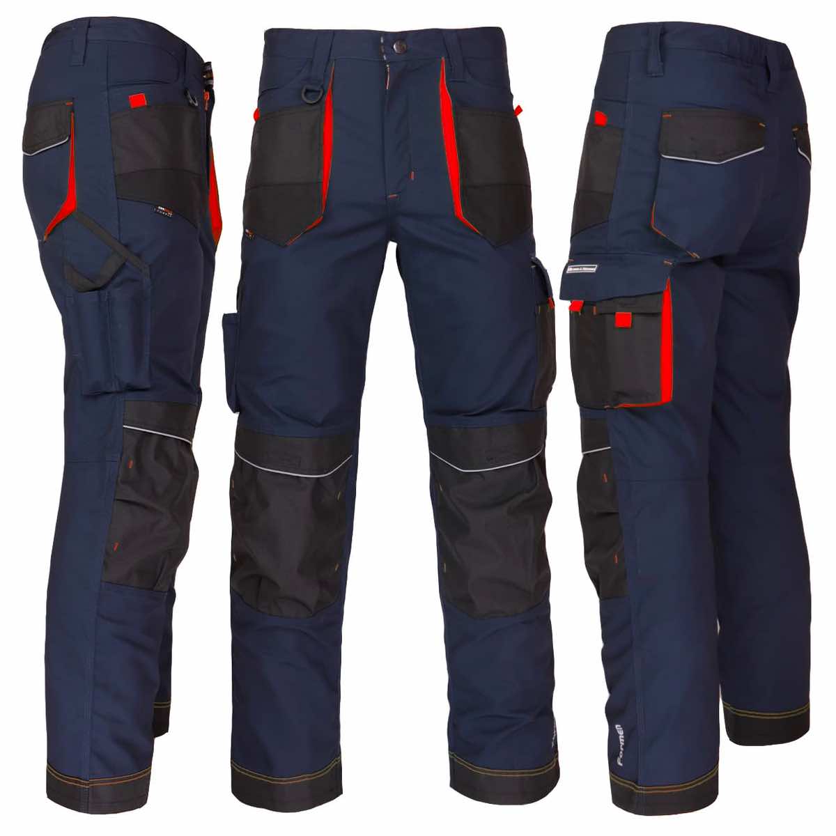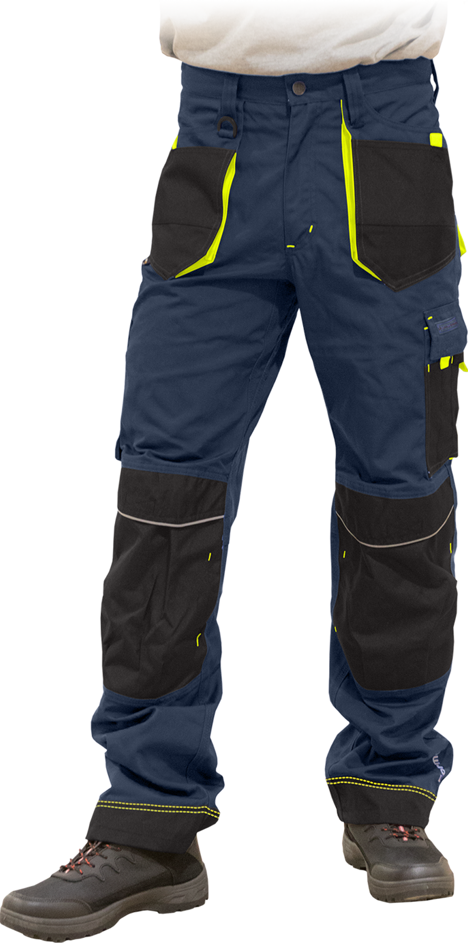 Strong and resistant men's work trousers. Sewn from extremely resistant fabric, so it is convenient to do complex work in various positions. Additionally designed convenient side pockets, reinforced key areas, added special loops for keys and work tools, there is a pocket to store a mobile phone and insert knee protectors. The fabric does not fade with intensive use and washing, so it ensures comfort and safe work in various conditions. Reinforced seams ensure a longer service life of the pants.