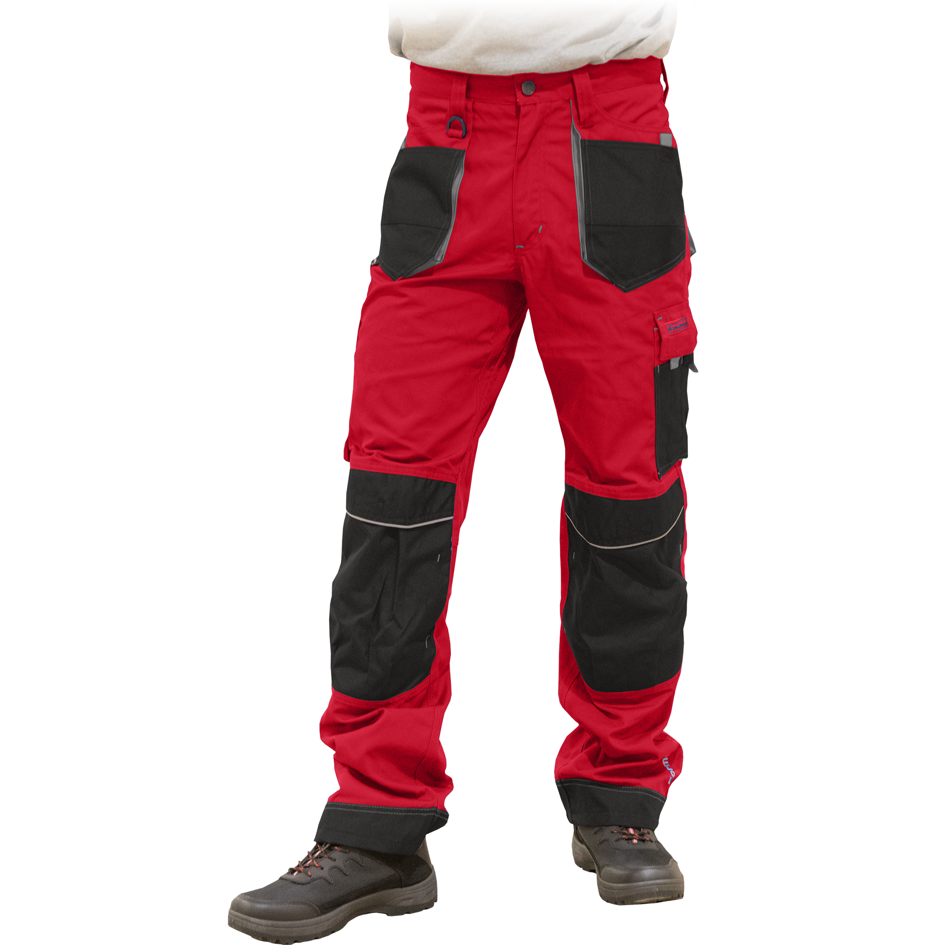 Strong and resistant men's work trousers. Sewn from extremely resistant fabric, so it is convenient to do complex work in various positions. Additionally designed convenient side pockets, reinforced key areas, added special loops for keys and work tools, there is a pocket to store a mobile phone and insert knee protectors. The fabric does not fade with intensive use and washing, so it ensures comfort and safe work in various conditions. Reinforced seams ensure a longer service life of the pants.