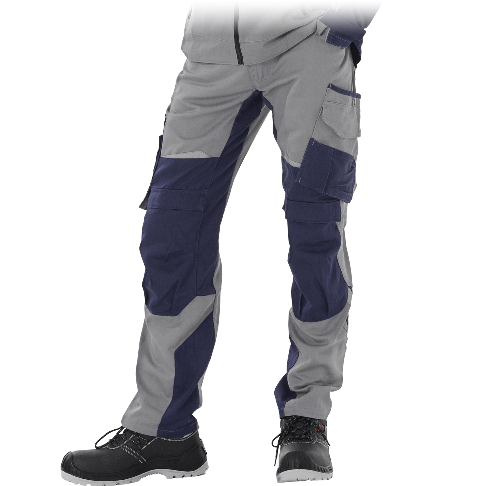 Sturdy and comfortable men's work pants made of strong and resistant fabric. Conveniently located pockets, places for additional knee protection, additionally reinforced places at the pockets, knees and bottom of the pants.