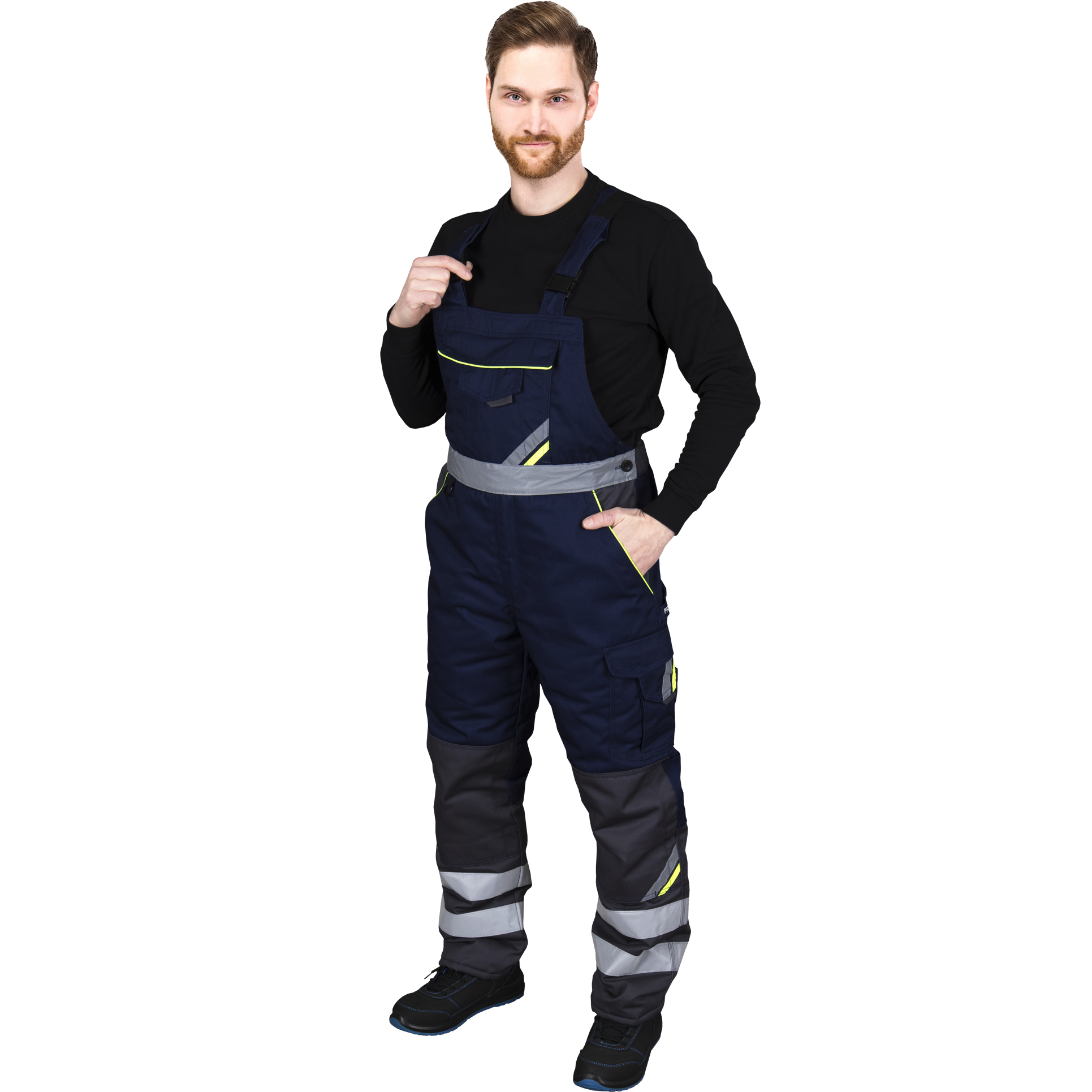 Sturdy warm men's work pants, made of strong and resistant fabric. Conveniently placed pockets, there is a place for a mobile phone and keys, places for additional knee protection, additionally reinforced places at the pockets, knees and bottom of the pants. Reinforced seams ensure a longer and comfortable service life. The fabric does not fade with intensive use and washing.