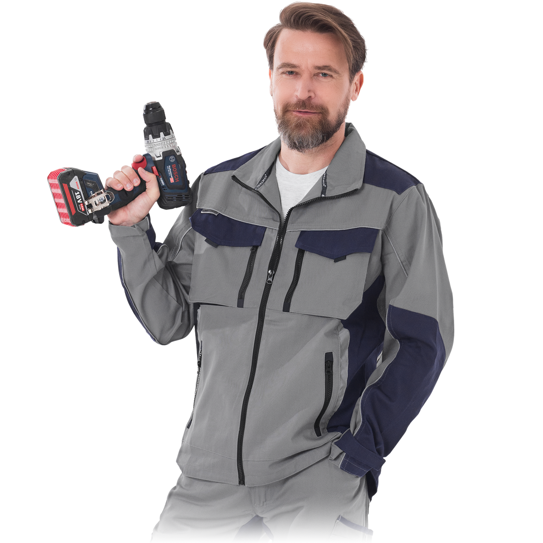 Quality and comfortable men's work jacket for comfortable work in various conditions. Made of durable and light fabric (100% cotton).