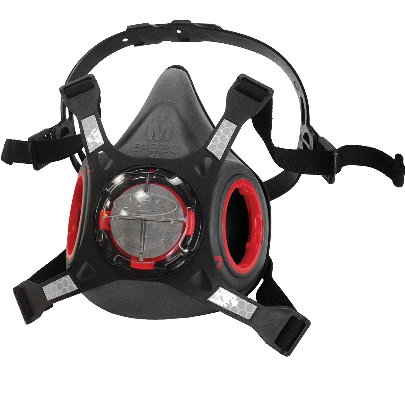 Reusable JSP half mask, FORCE 8 series. With valves Typhoon that provide smaller exhalation resistance. CR2 ™ reflective elements ensure better visibility in the environment. Unique head strap system with convenient zip. Complies with EN140 standard, has CE mark.