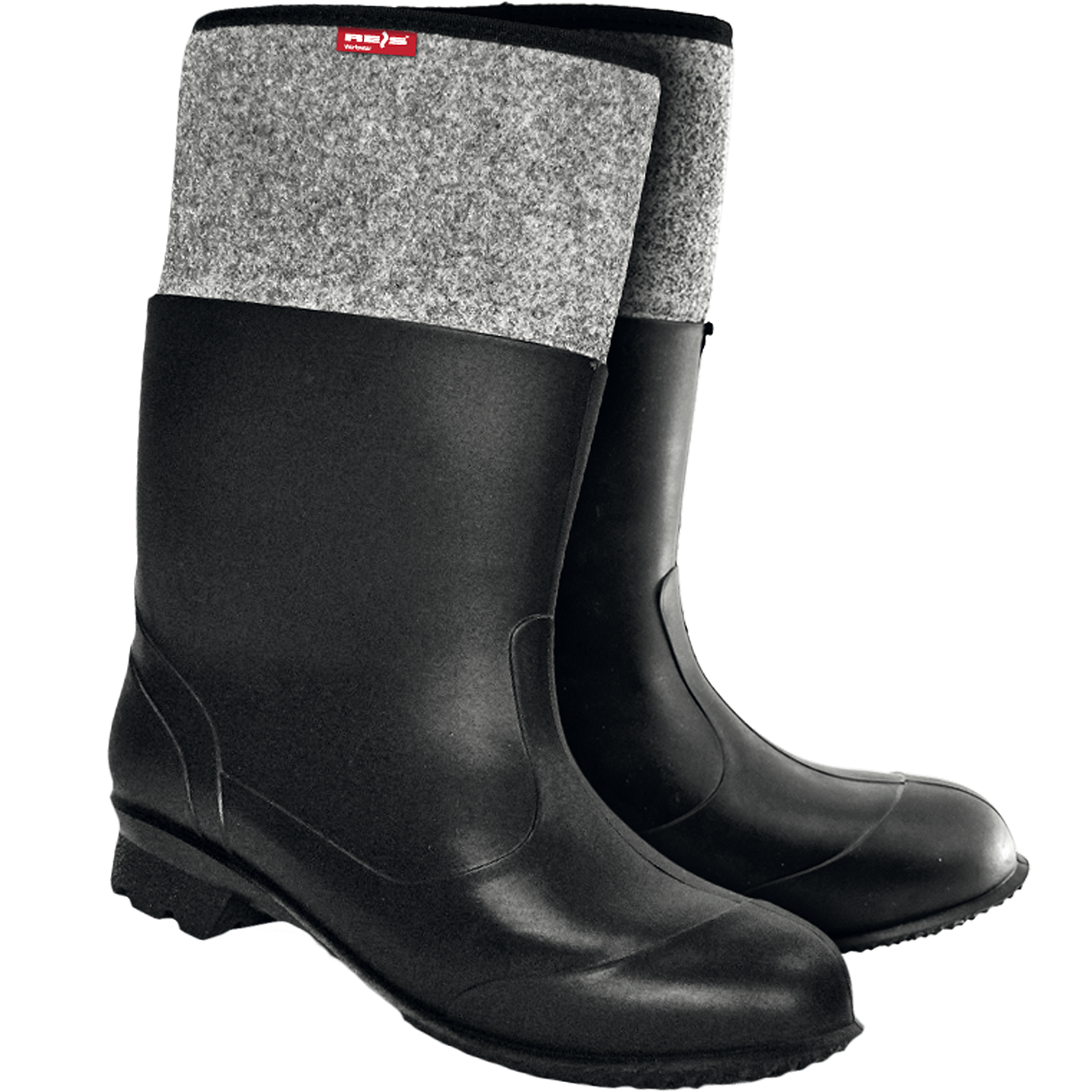 Comfortable heated men's rubber boots made of PVC material with heating. The upper part of the shoe is made of fabric for comfortable wearing. boots provide protection against cold and moisture penetration. Molded non-slip sole, protected from the cold.