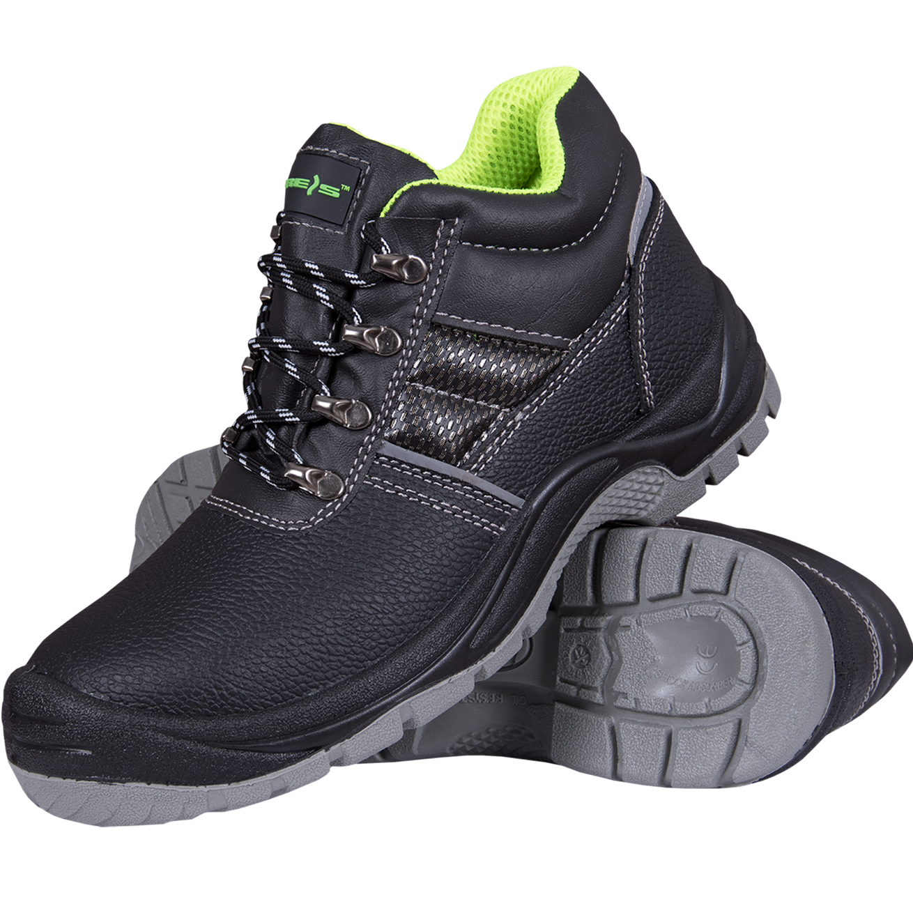 Comfortable and durable work boots made of durable leather. The shoes have a double polyurethane sole. Built-in toe protection against falling objects. Puncture-proof and non-slip sole. The sole is fuel resistant. Antistatic.