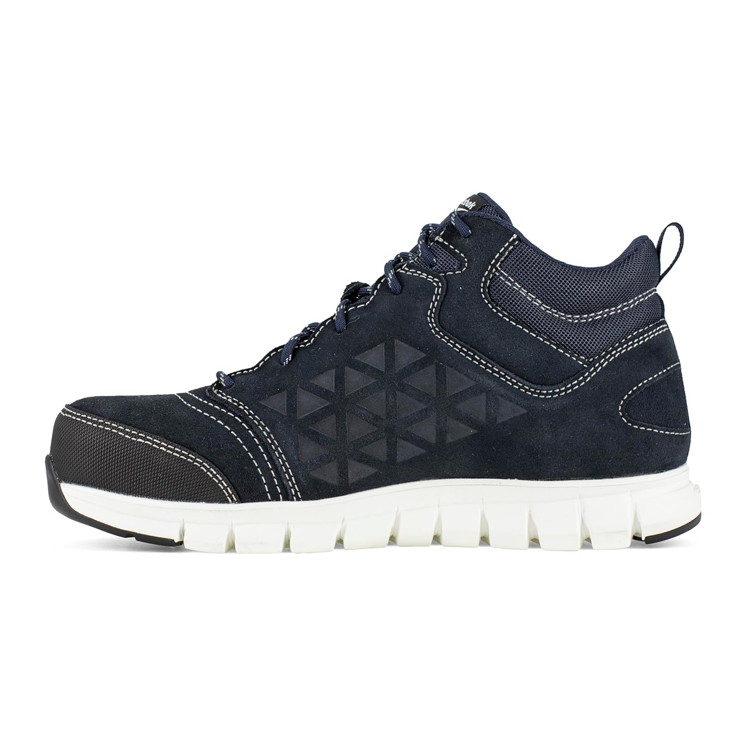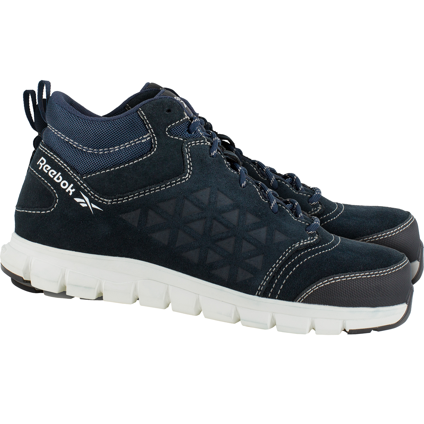 Reebok protective work boots, made of pressed leather. The shoes have a double polyurethane sole. Built-in toe protection against falling objects. Extra reinforced construction at the toes and heel. There is protection against puncture of the sole.