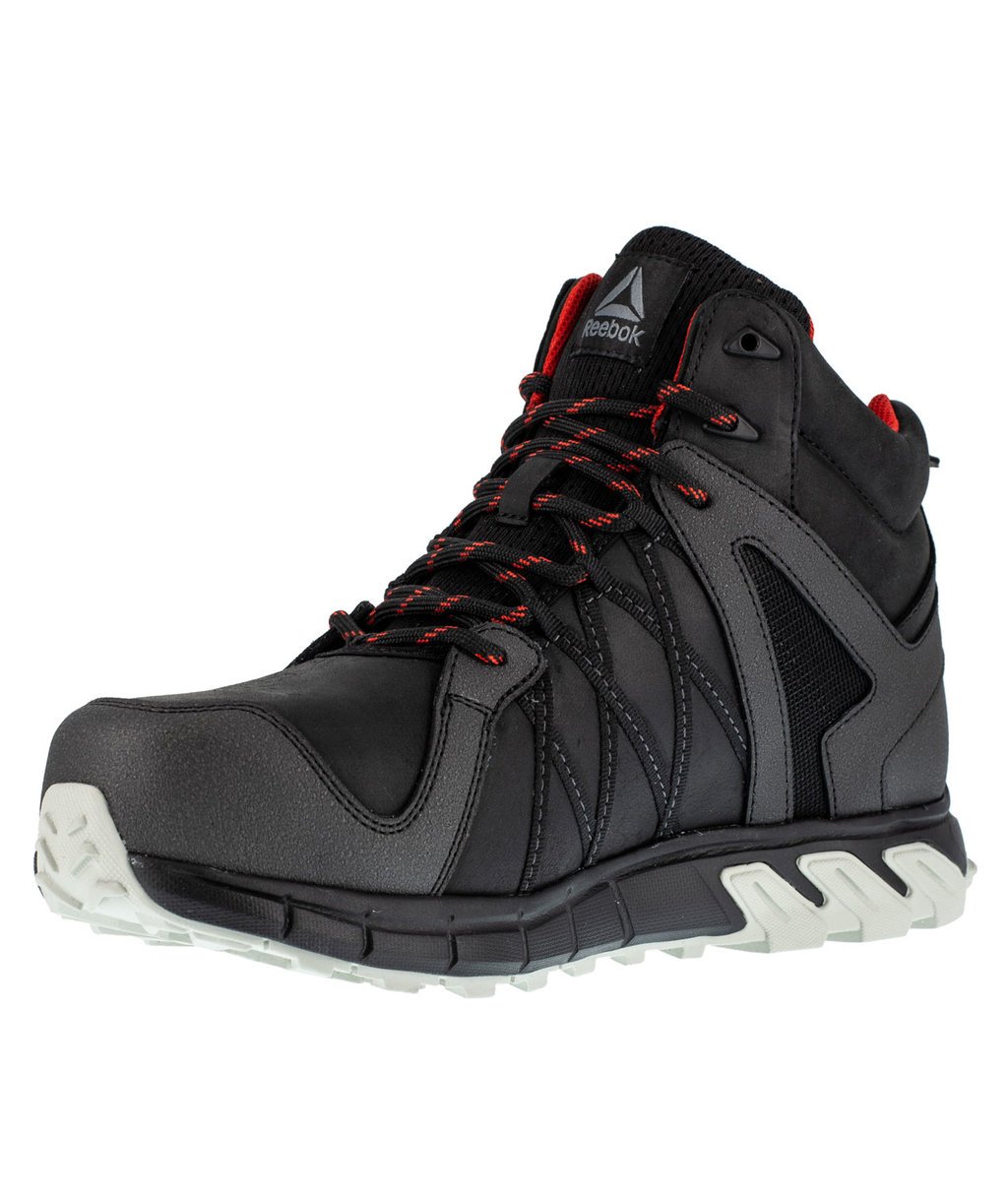 Reebok protective work boots, made of pressed leather. Built-in toe protection against falling objects. Extra reinforced construction at the toes and heel. There is protection against puncture of the sole.