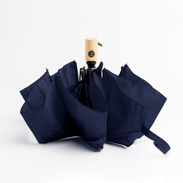 Automatic umbrella with open and close mechanism - Black fiberglass legs and tips ensure strength, while the wooden handle adds elegance. The umbrella has a Velcro closure and is windproof, making it perfect for stormy days.