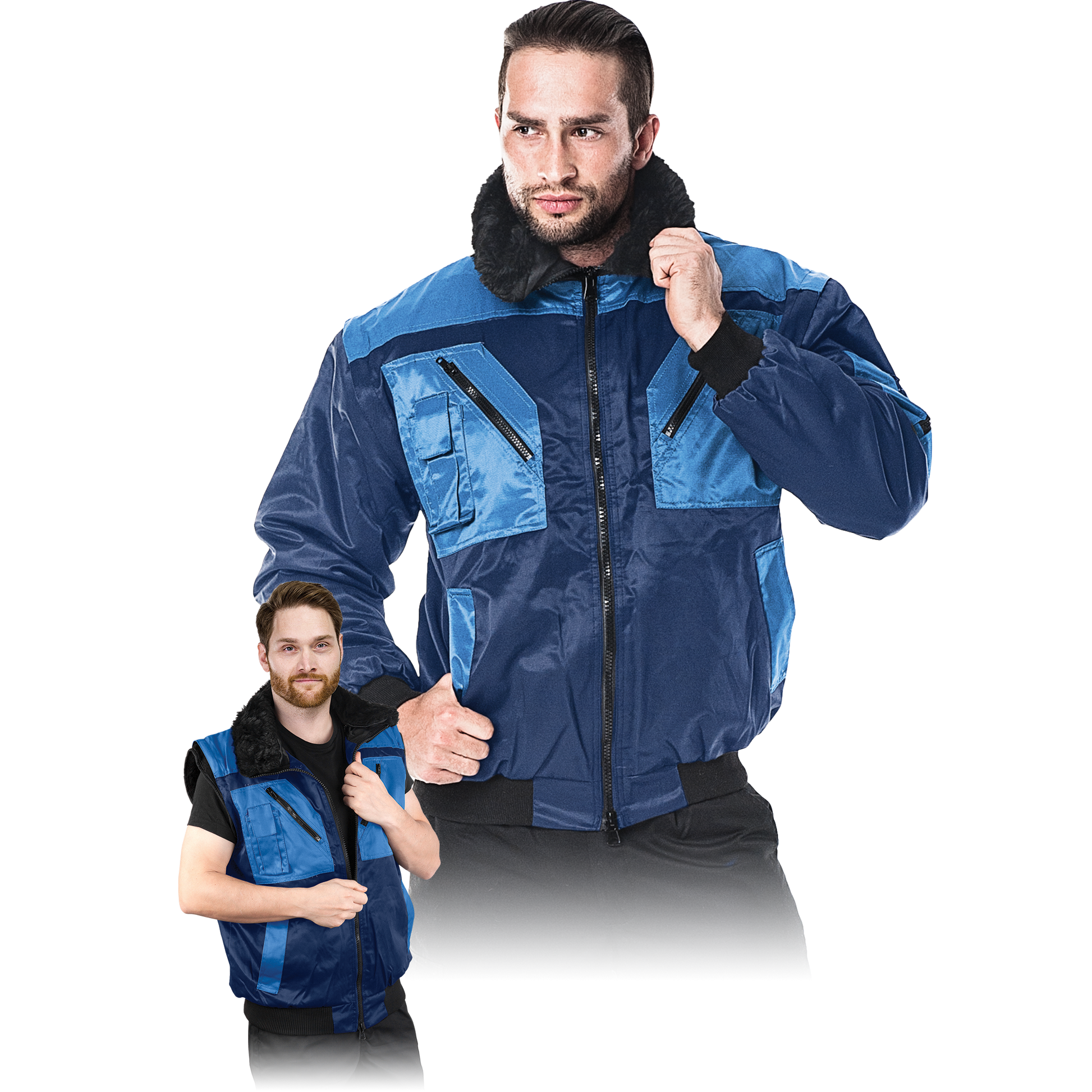 - collar and jacket are insulated with removable fur, the collar has an additional Velcro fastener