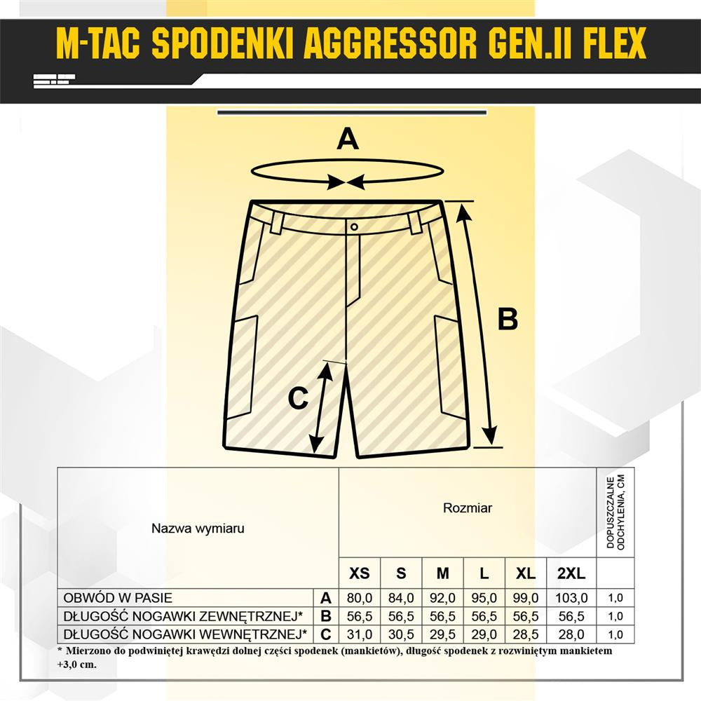 Universalūs, tvirti ir funkcionalūs šortai M-Tac Aggressor 2 Flex, Spalva Dark Olive