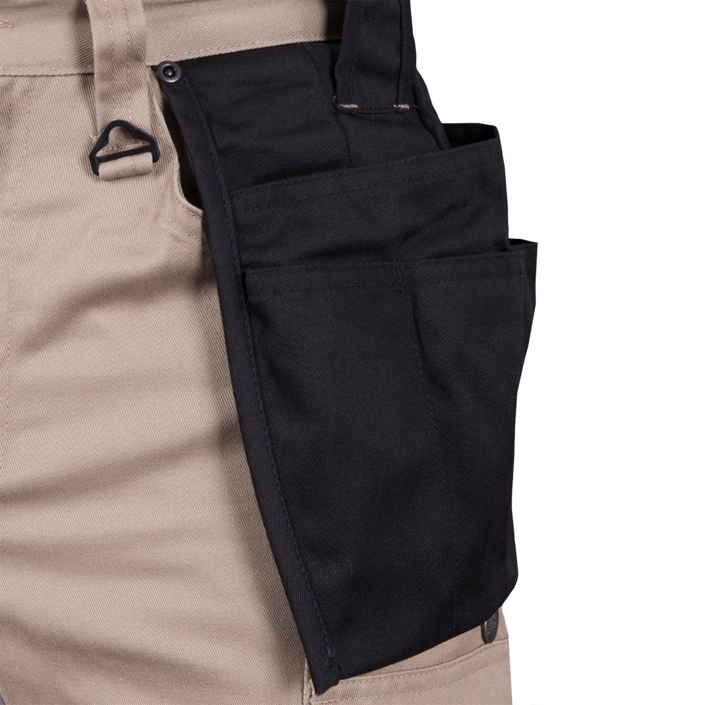 High quality men's work shorts made of liquid, grease and dirt resistant fabric. For additional reinforcement, the pockets are designed to be comfortable to work in various positions.