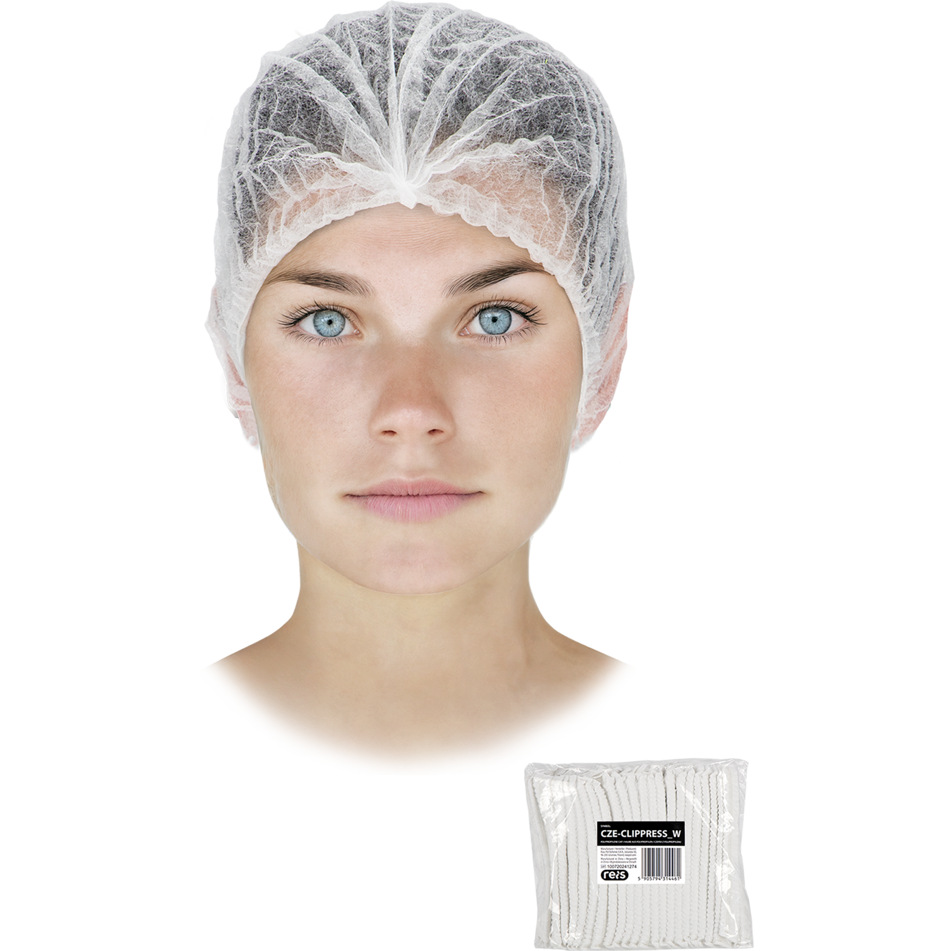 Vienkartinės kepurėlės CLIPPRESS WHITE (100 vnt.), baltos spalvos