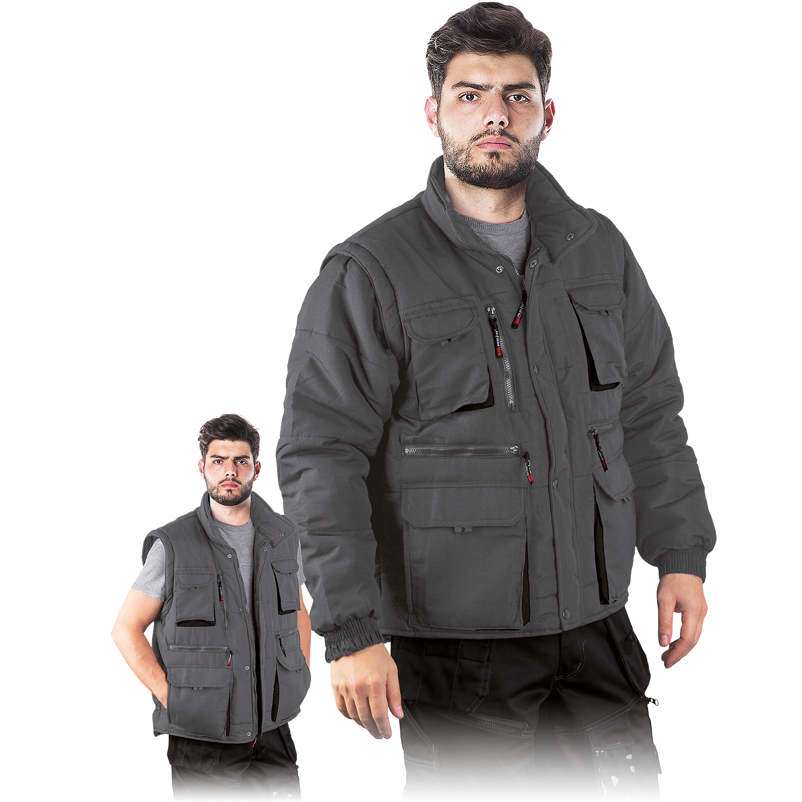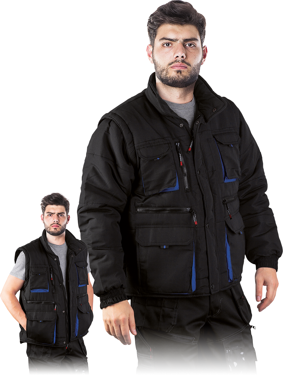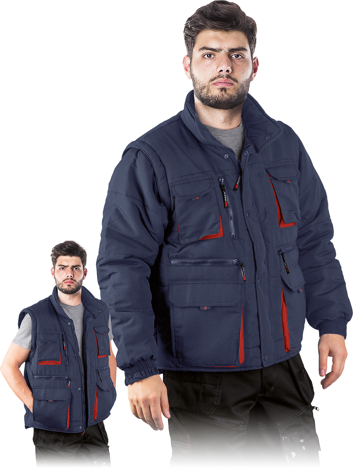Universal men's winter leisure and work jacket. Made of lightweight fabric for comfort when working outdoors. Has additional side pockets.
