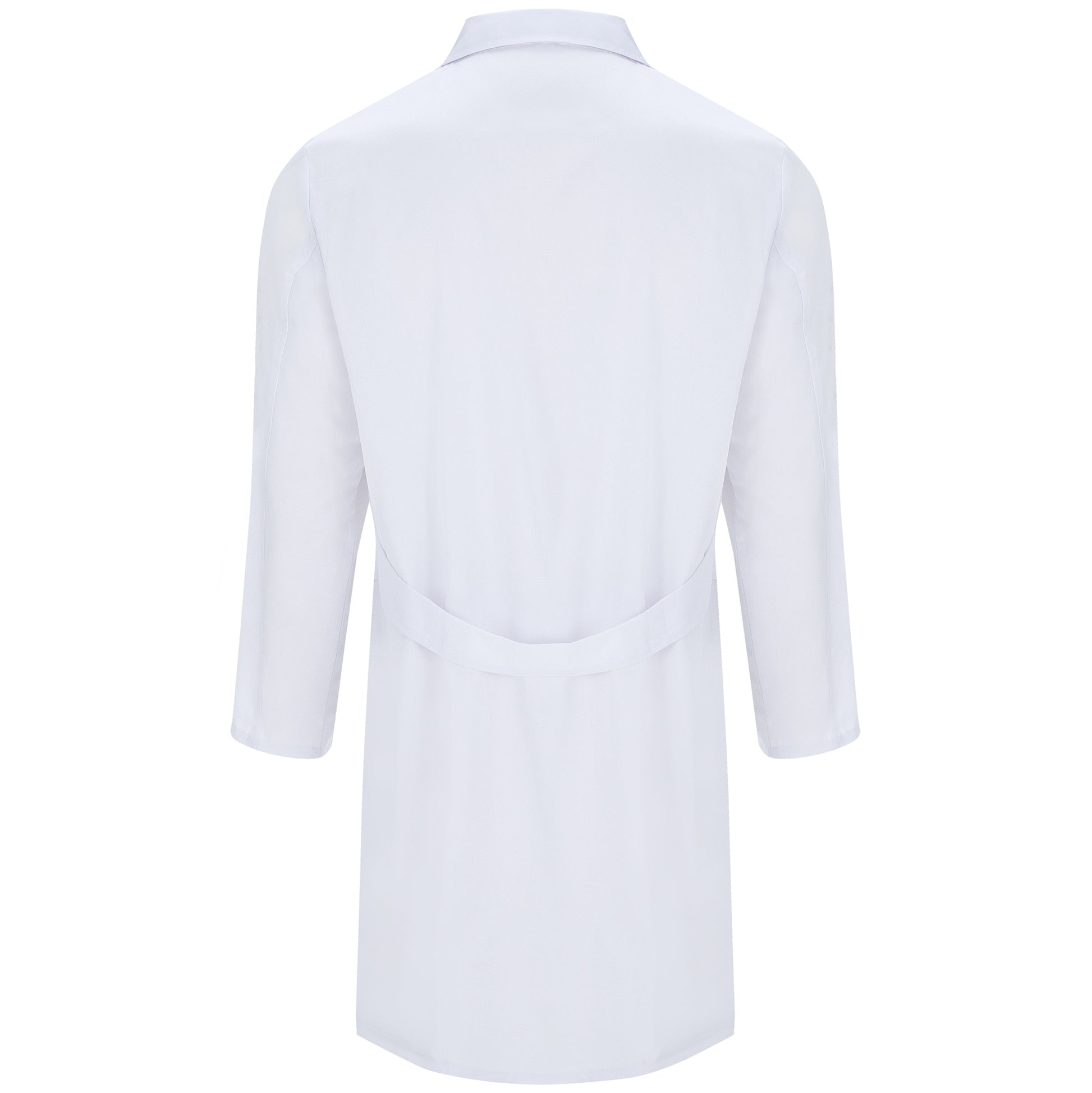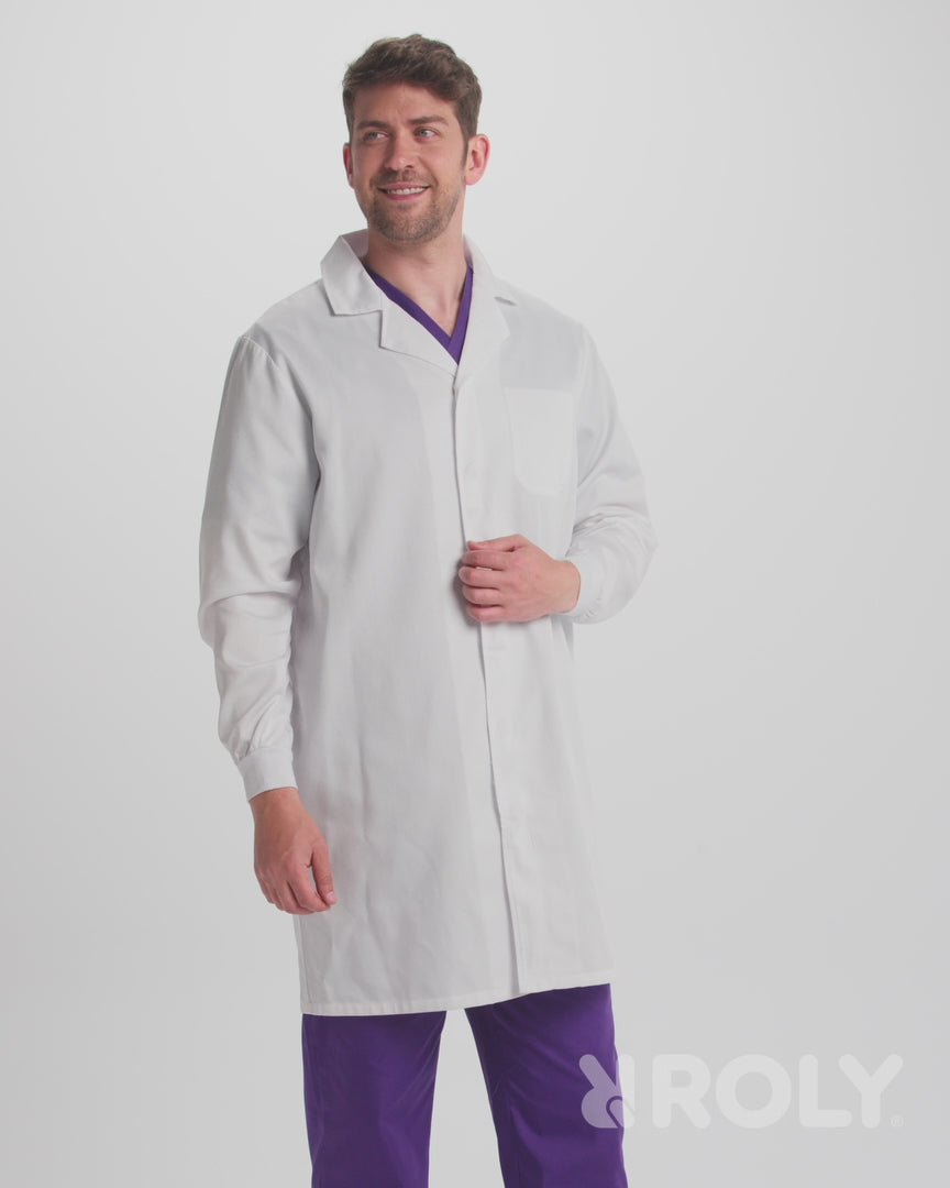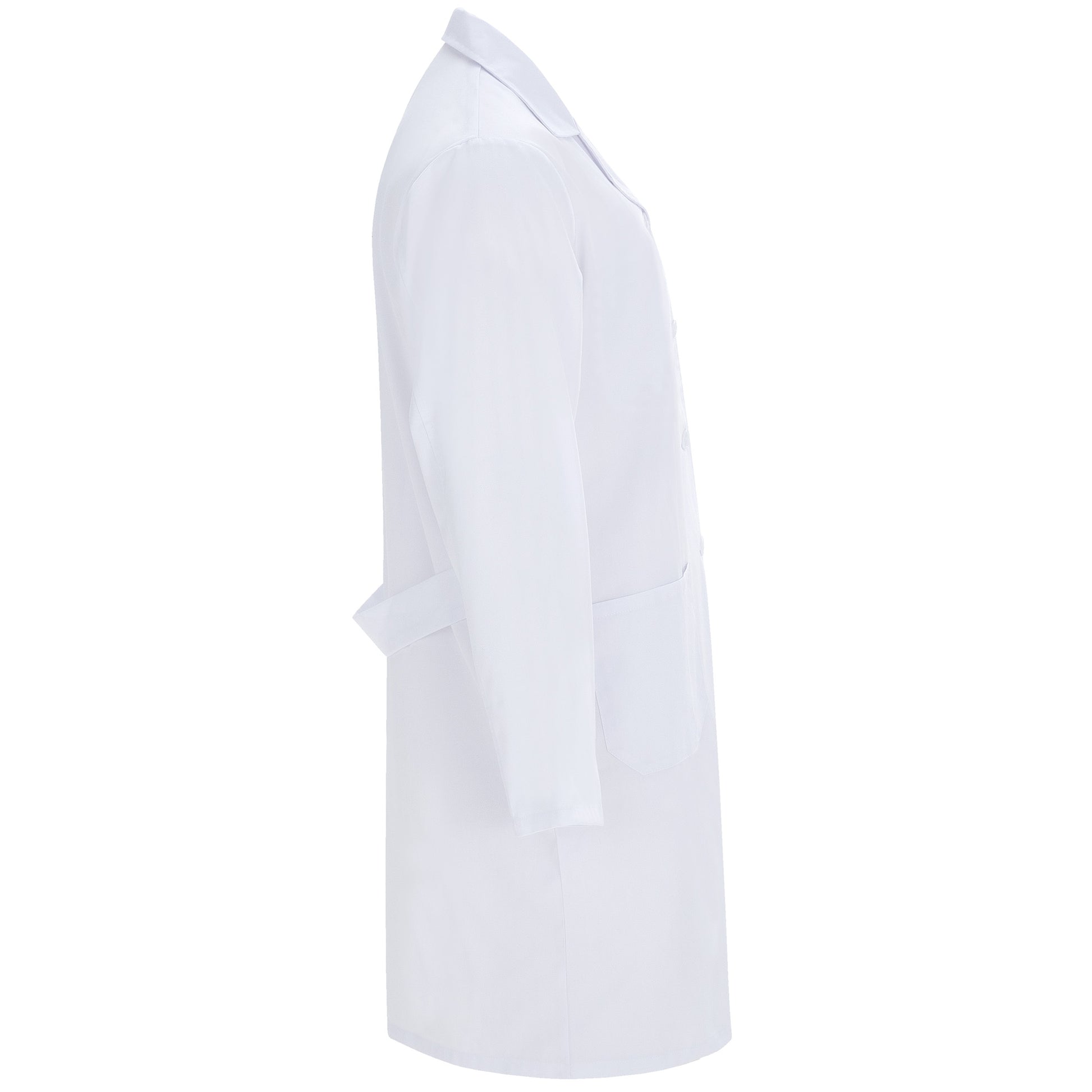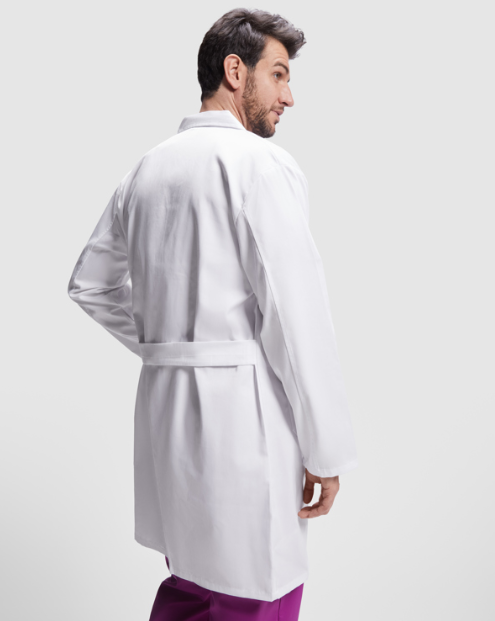 Šis ilgarankovis darbo chalatas su atverčiama apykakle ir 5 sagomis priekyje – tai klasikinis modelis, skirtas profesionaliam naudojimui laboratorijose, medicinoje, grožio, maisto ir valymo sektoriuose. Chalatas suprojektuotas taip, kad būtų funkcionalus, patogus ir ilgaamžis – turintis tris erdvias kišenes ir nugarinį juosmens suveržimą, kuris pagerina prigludimą.
