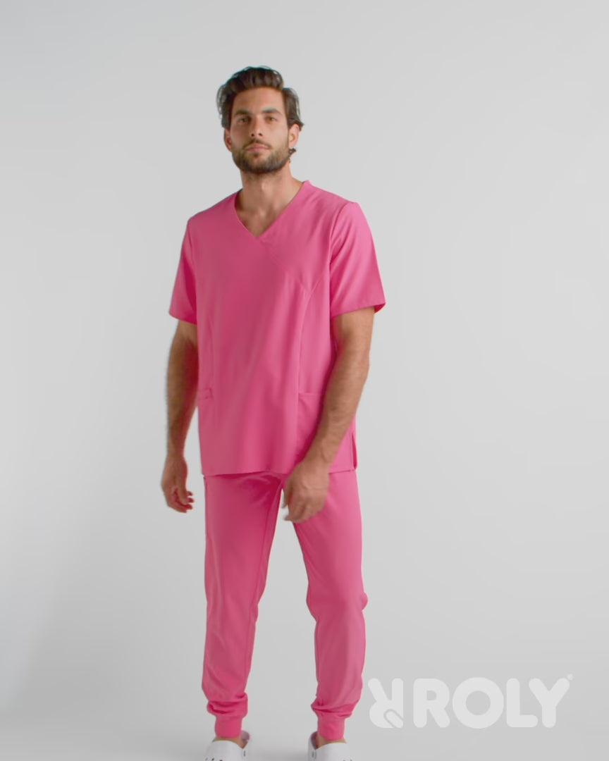 The men's short-sleeved medical jacket is a great choice for a variety of professions, including healthcare, laboratories, the cosmetics industry, the food industry and cleaning services. The jacket has a crisscross V-neck and two practical French pockets .
