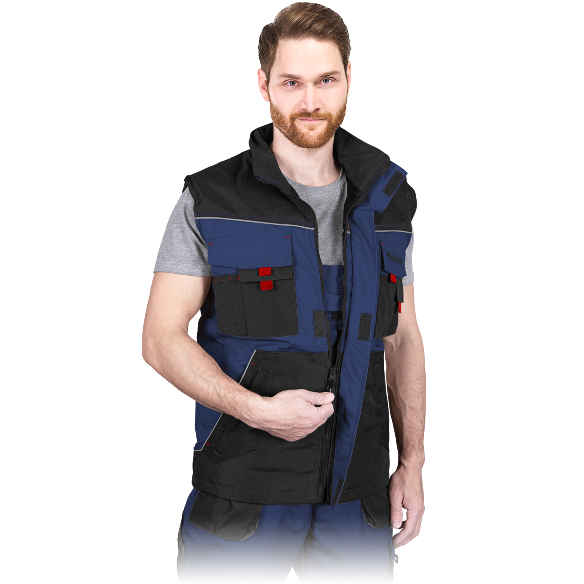 Strong and comfortable warm vest with increased resistance, adapted for intensive use in various conditions. Many convenient pockets are planned. Reflective elements are used for safe work in the dark.