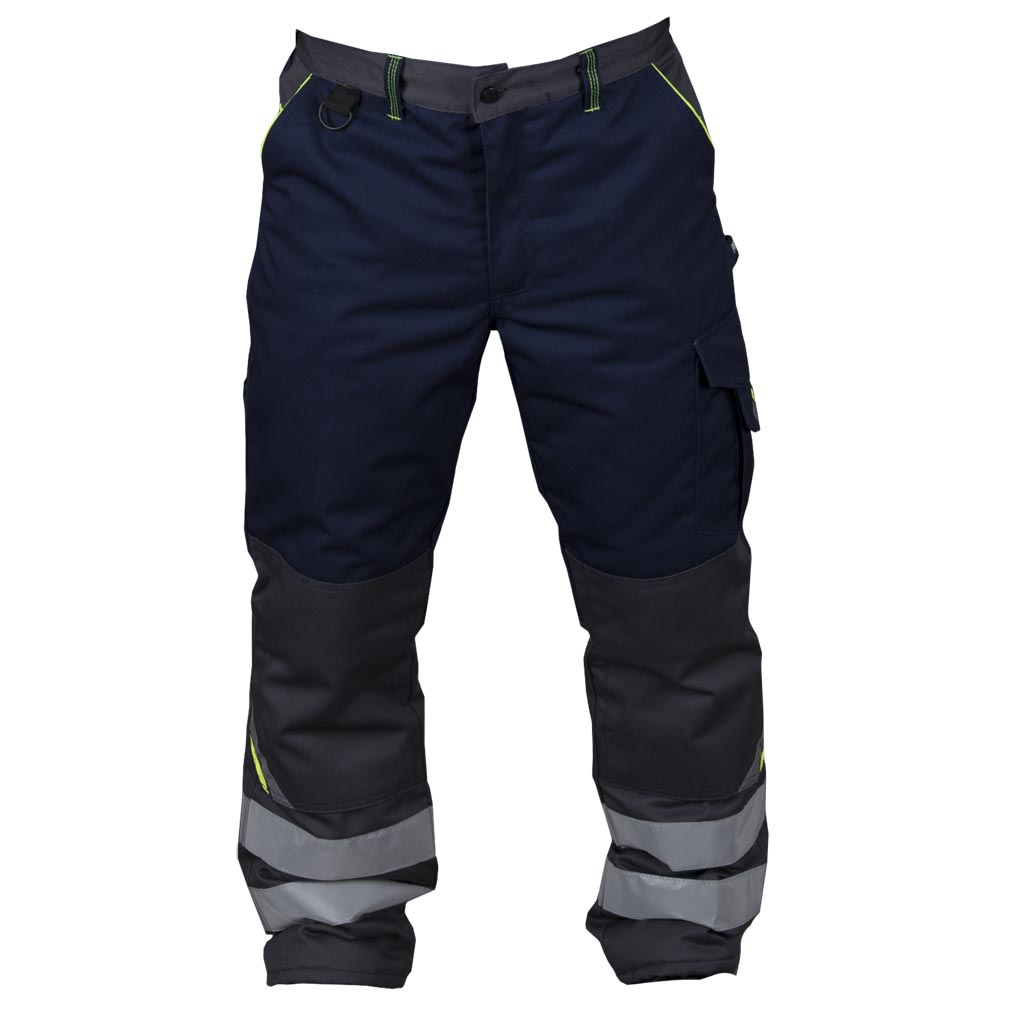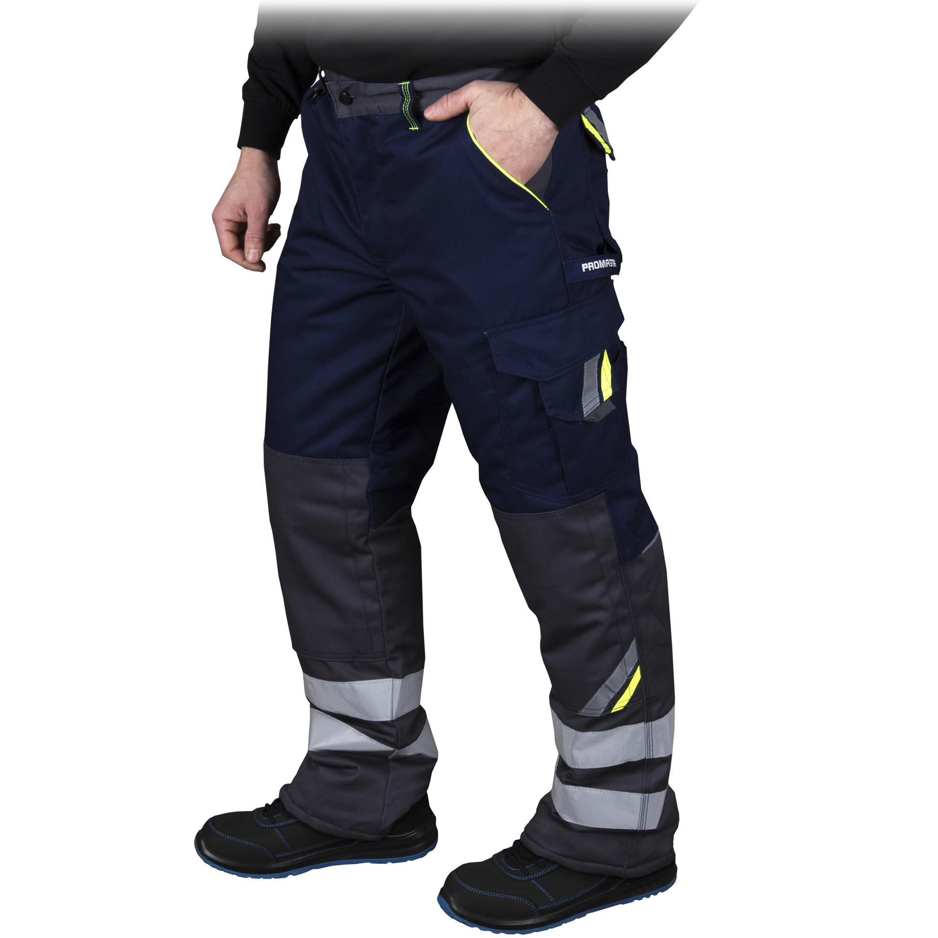 Warm men's work pants made of durable workwear fabric. Designed for demanding jobs in a variety of positions in cold climates. Convenient side pockets have been additionally planned, the most important places have been reinforced, special loops for keys and work tools have been added, and there is a place to insert knee guards. Reinforced seams ensure longer and reliable wear. With reflective details.