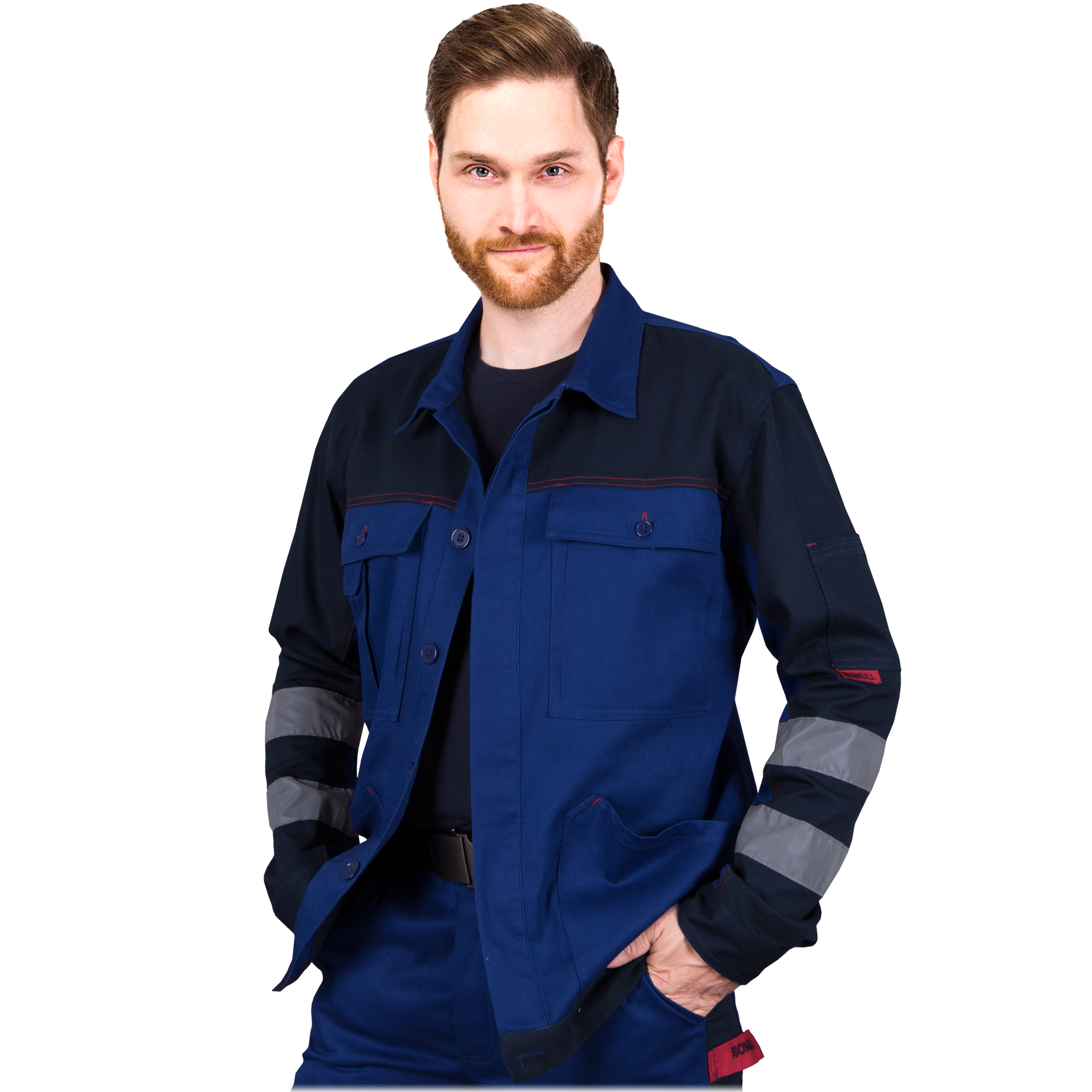 Durable and comfortable men's work jacket for comfortable work in various conditions. With reflective strips. Made of durable and light fabric (100% cotton).