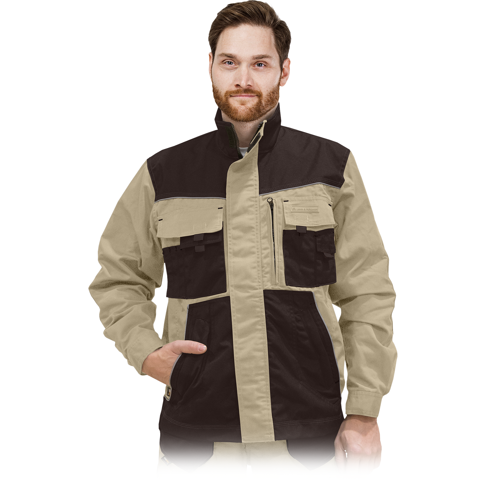 Sturdy, enhanced resistance men's work jacket. Made from highly resistant fabric for comfortable handling of difficult jobs in various positions. Convenient side pockets are additionally designed, the most important places are reinforced, there is a pocket for keeping a mobile phone, strong and reliable zippers are used.