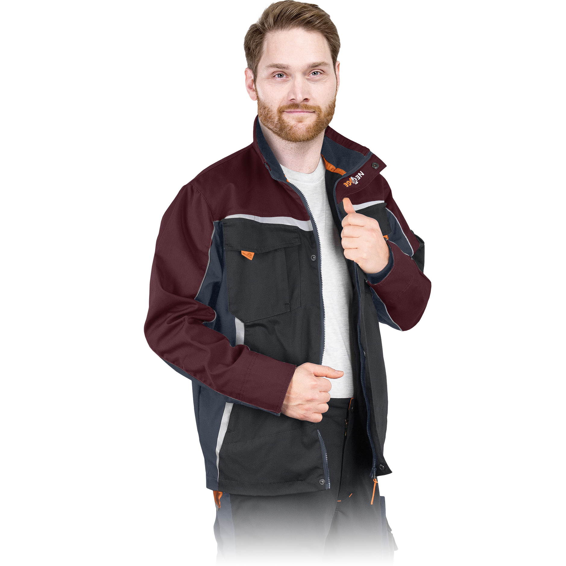 Sturdy, enhanced resistance men's work jacket. Made from highly resistant fabric for comfortable handling of difficult jobs in various positions. Convenient side pockets are additionally designed, the most important places are reinforced, there is a pocket for keeping a mobile phone, strong and reliable zippers are used.